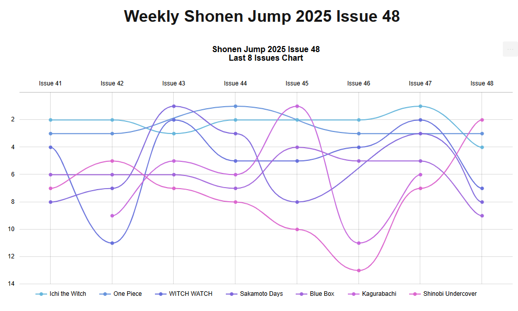 รายงานผลจัดอับดับและการเคลื่อนไหวของ โชเน็นจัมป์ตั้งแต่เล่มที่ 48/2025 ช่วง 8 สัปดาห์ที่ผ่านมา