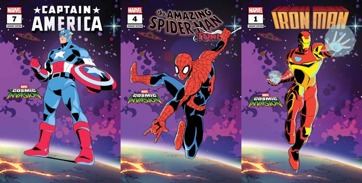ธีมปก variant เดือนนี้ได้แก่... Marvel Cosmic Invasion!! หรือก็คือเอาตัวละครจากเกมใหม่มาเก๊กท่าไปงั้นเอง