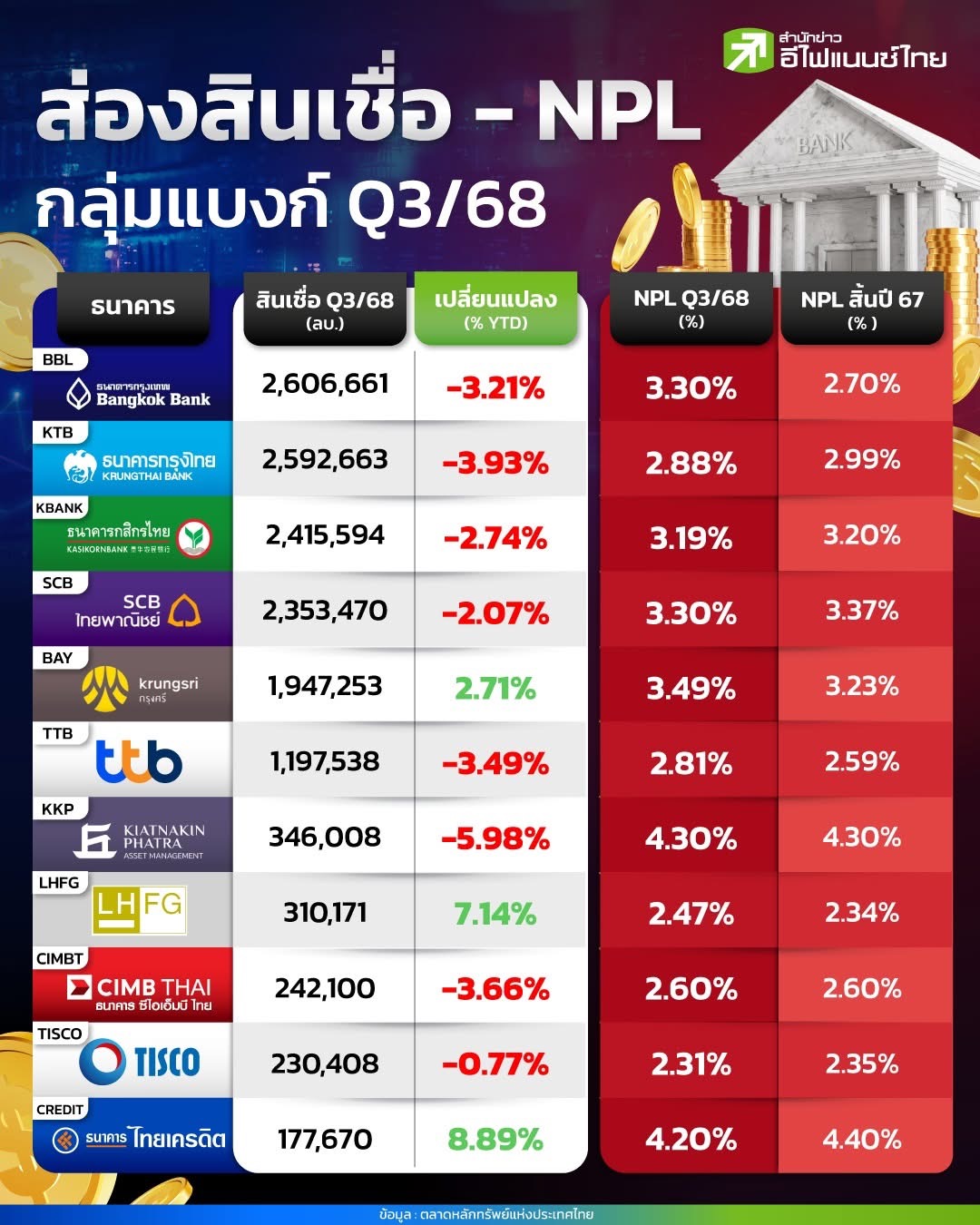"ส่องสินเชื่อ - NPL กลุ่มแบงก์ Q3/68"