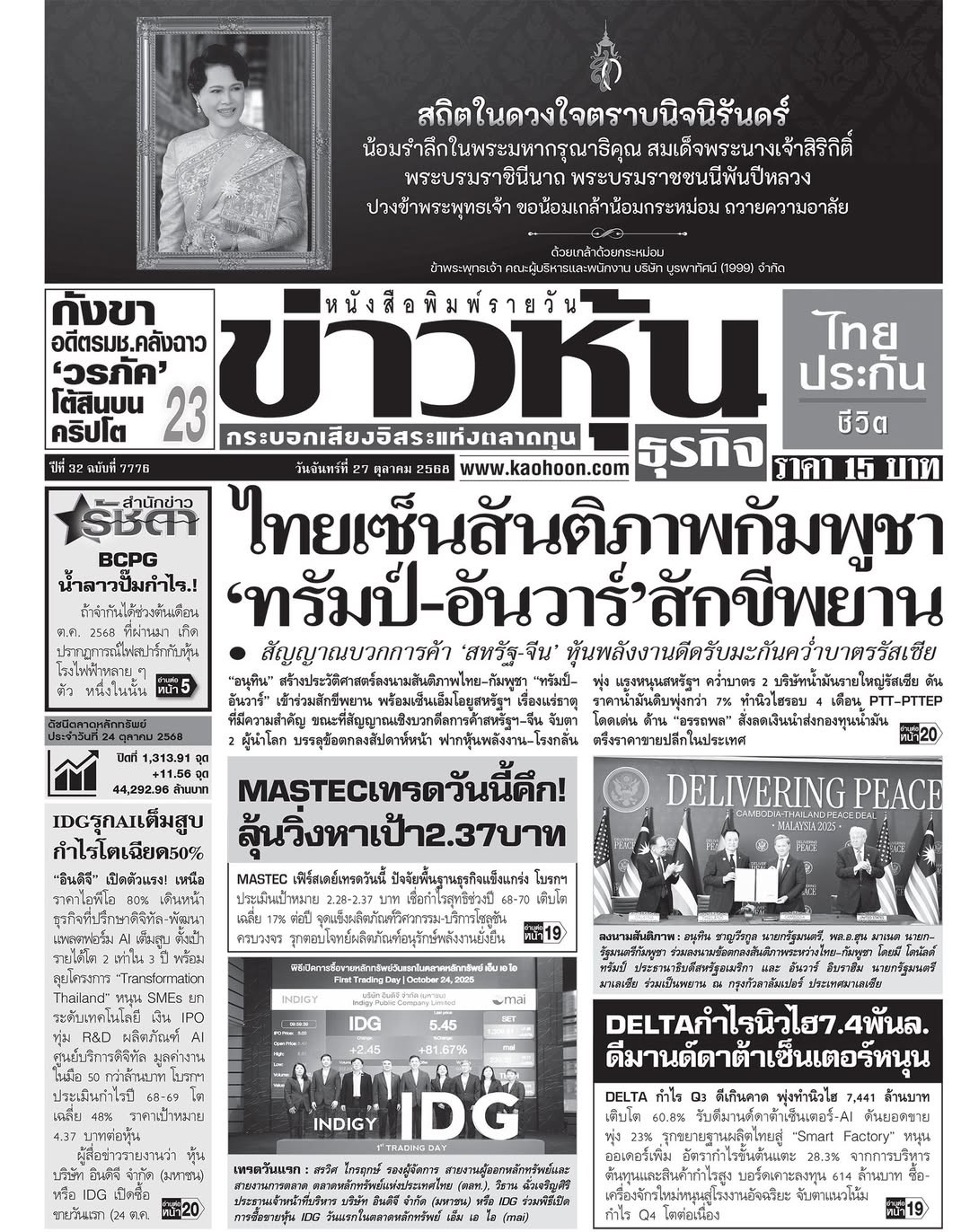 กรอบการลงทุน วันที่ 27 ตุลาคม 2025