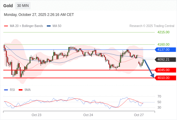 แนวทางการเทรด: หากราคาต่ำกว่า 4137 มีโอกาสที่ราคาจะลงไปที่ 4045 และ 4010