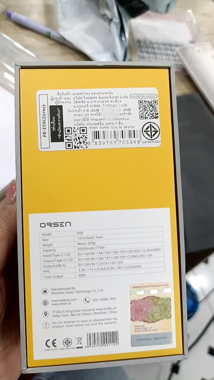 สอบถามเกี่ยวกับ power bank Eloop E14 รุ่น Orsen กับรุ่นกล่องกระดาษ