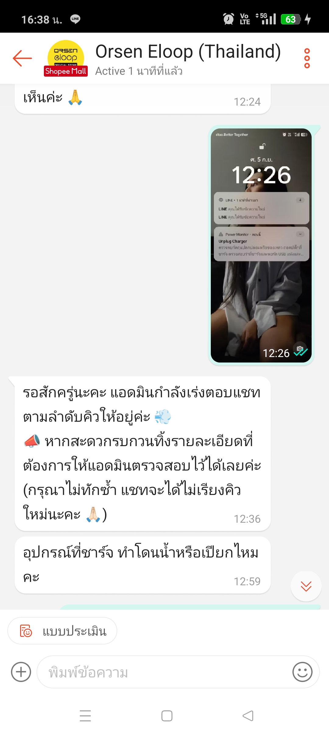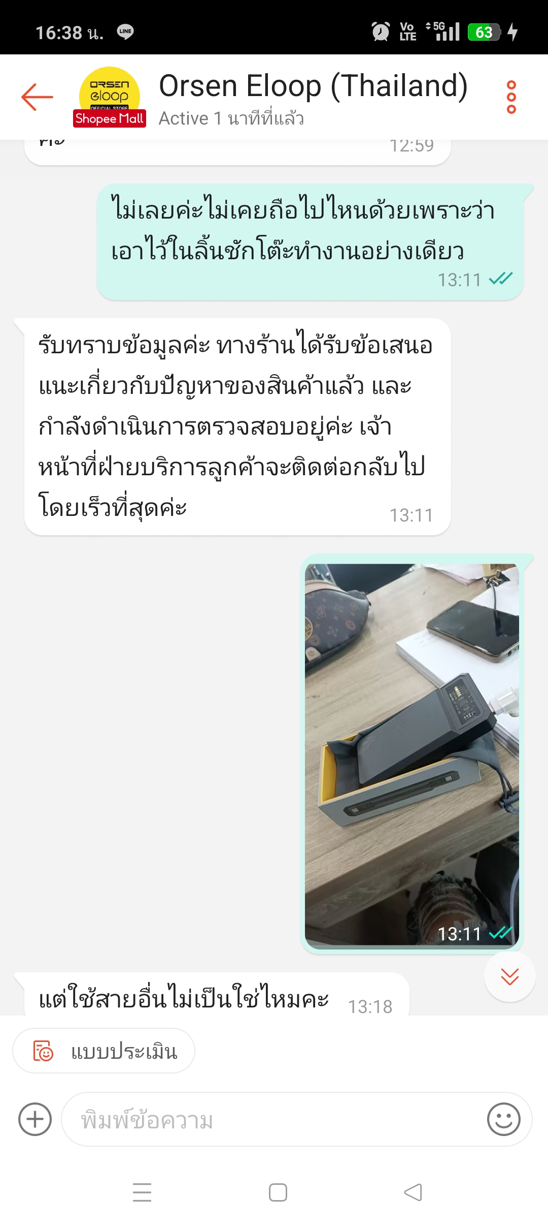ซื้อ Power Bank ELoop E34 ร้าน Mall ร้านหนึ่งใน Shopee เมื่อวันที่ 29/7/25 ซึ่งยังอยู่ในประกัน จู่ๆก็ไม่สามารถชาร์จไฟเข้า Power Bank ได้โดยขึ้นไฟแค่ 1 ดวง เสียบกับหัวปลั๊กไฟขนาด 65W ตั้งแต่เช้าก็ไม่เพ