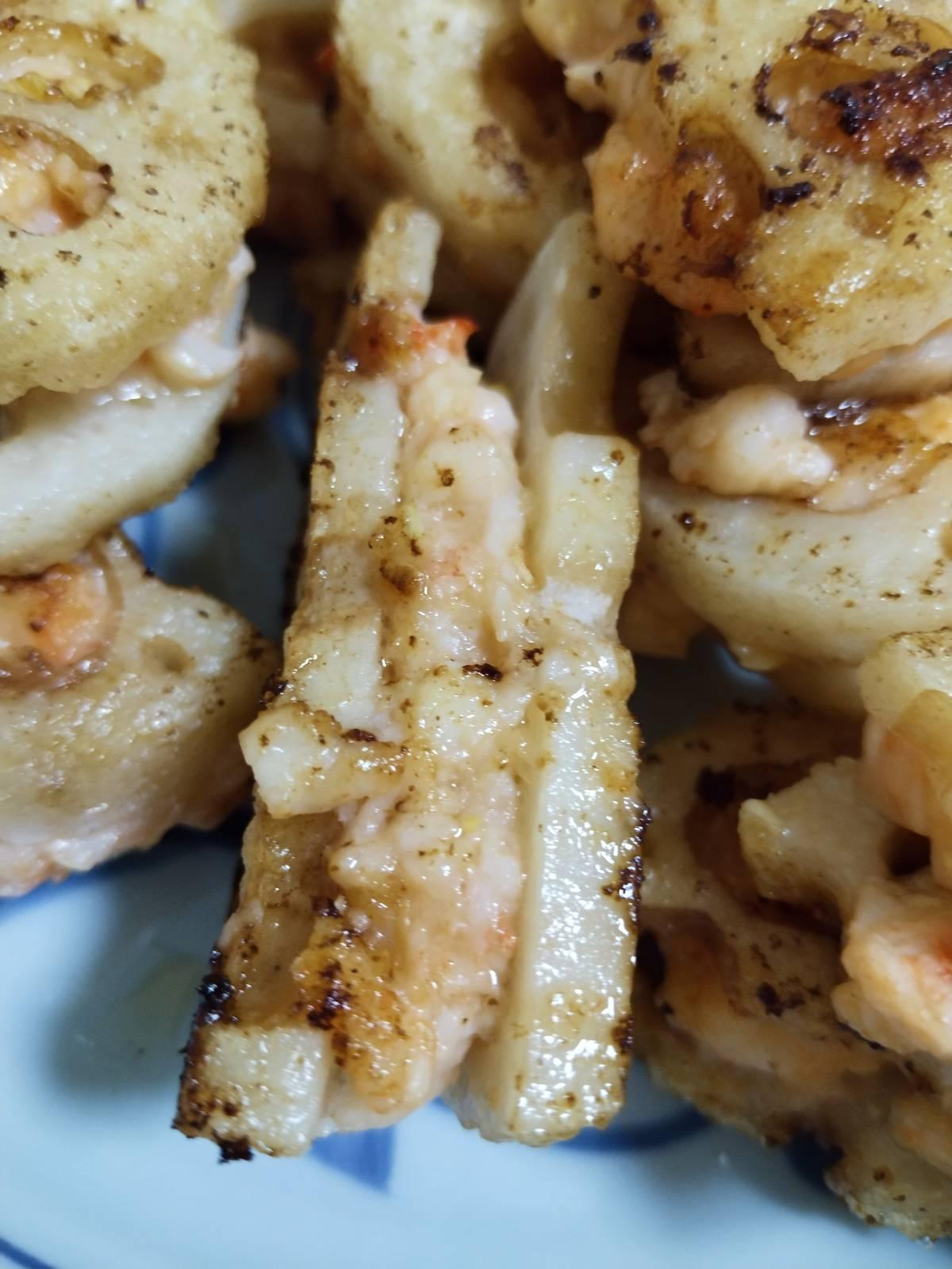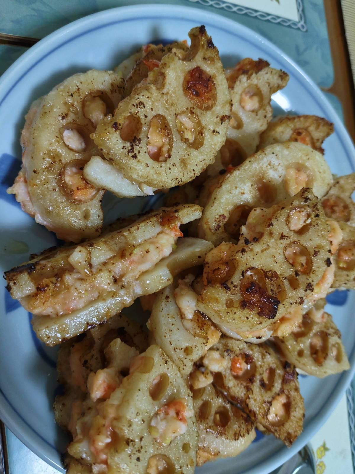 れんこんのエビはさみ揚げ รากบัวสอดไส้กุ้งทอด กับเรื่องราวของรากบัว
