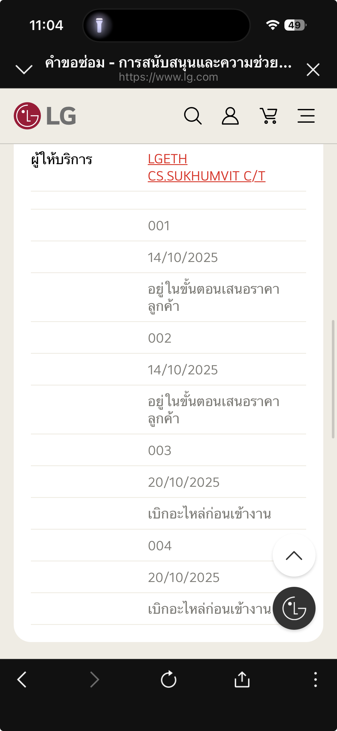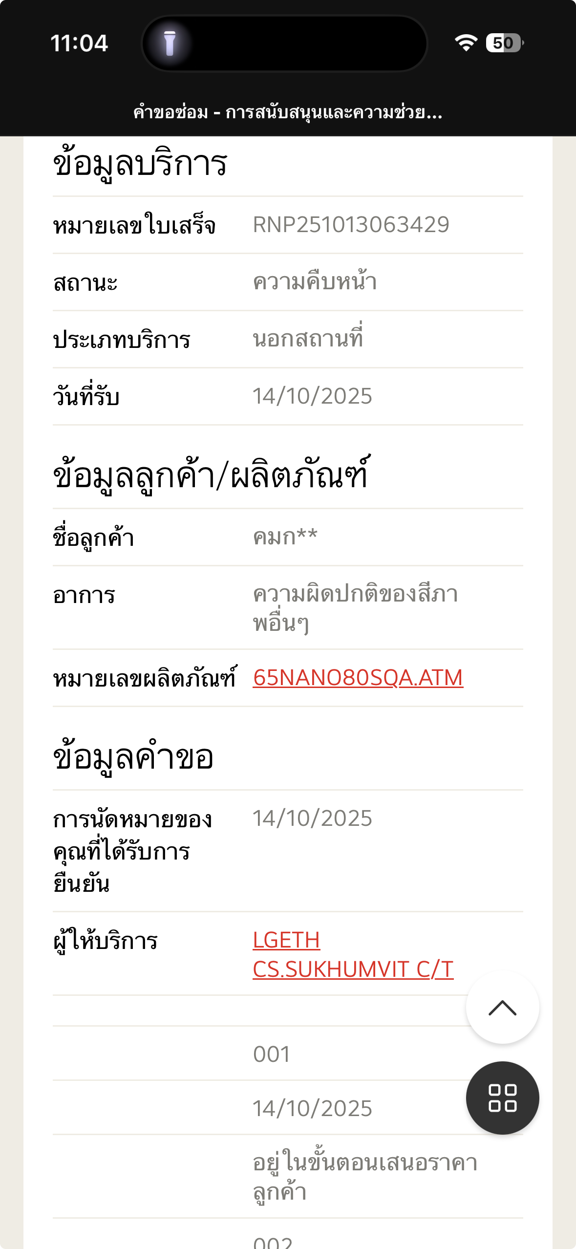 [CR] แจ้งซ่อมทีวี LG ช่างรับเรื่องแล้วไม่ดำเนินการซ่อม