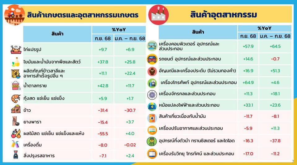 โดยเป็นการขยายตัวในกลุ่มสินค้าอุตสาหกรรมเกษตร 4.1% และสินค้าอุตสาหกรรม +26.4% ขณะที่สินค้าเกษตร -18.2%