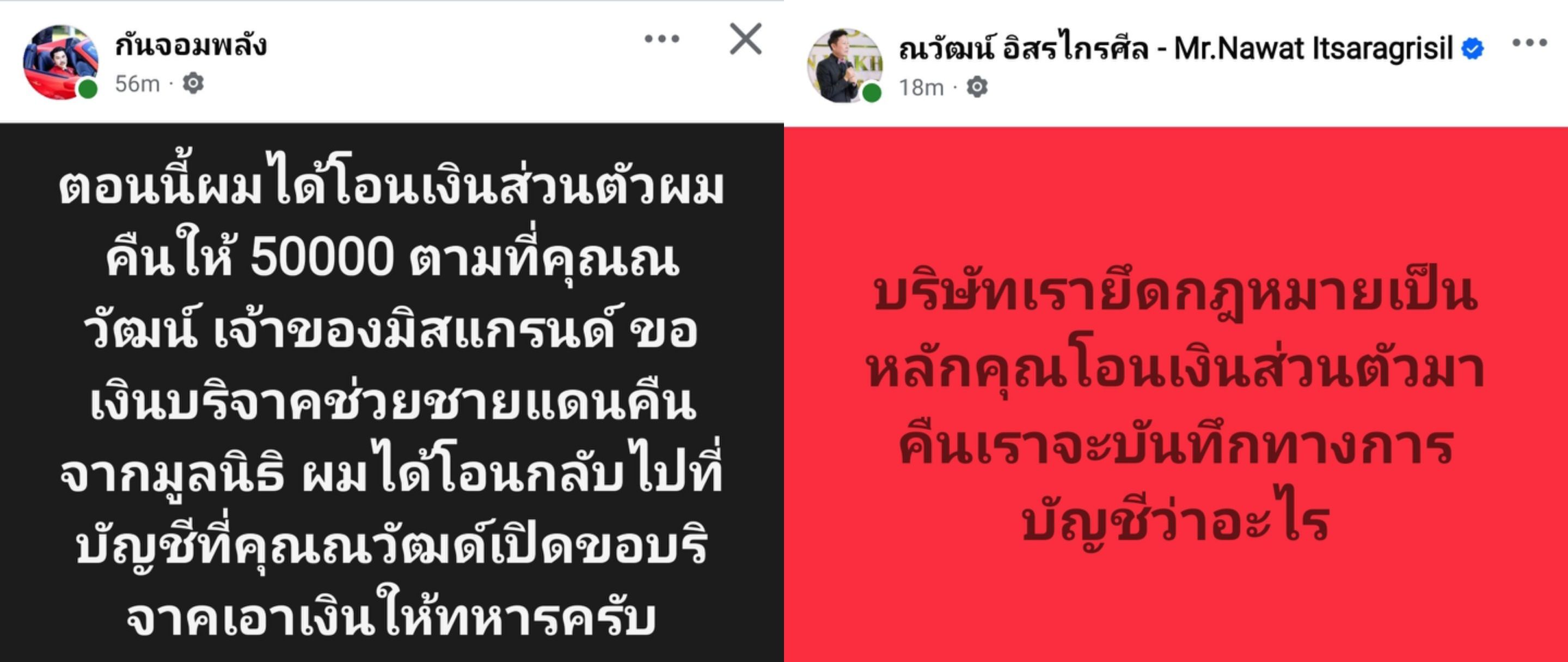 กันจอมพลัง VS บอสณวัฒน์ เรื่องโอนเงินบริจาค 50,000 คืน ในฐานะนักธุรกิจ คุณมีมุมมองต่อกรณี้ยังไง ?