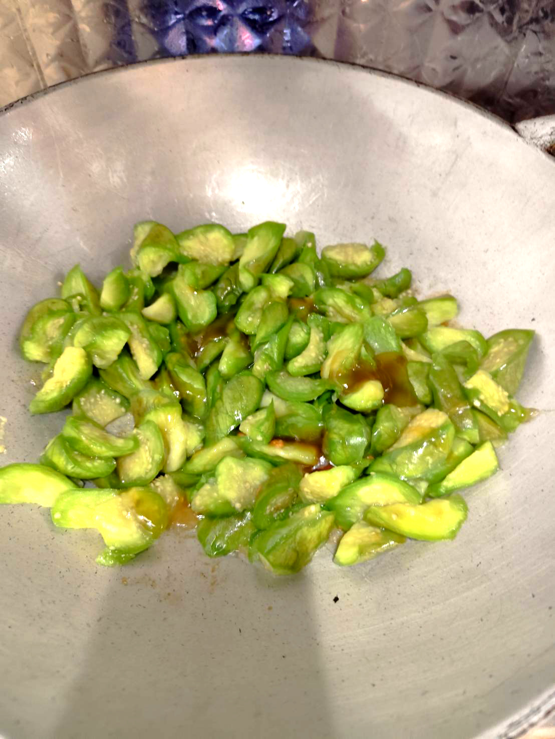 ก่อนผัดจะใส่เต้าเจี้ยวลงไปผัดก่อน
