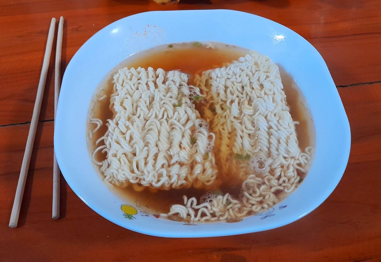 คำแรกที่กิน แบบว่า ผมต้องเดินไปหาซองเครื่องปรุงต้มยำกุ้งบ้านเรามาใส่เพิ่มเลย...ไม่ถูกปากผมเอาซะเลย