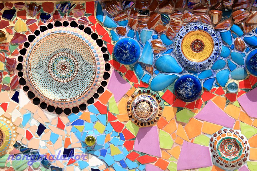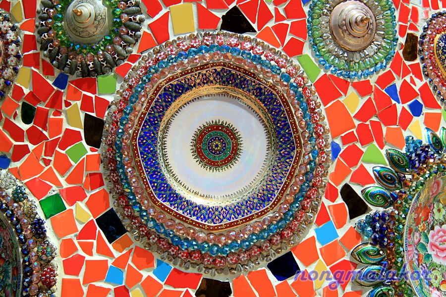 วัดตกแต่งใช้เครื่องเบญจรงค์ กระเบื้องสี ลูกแก้ว สวยงาม จนตะลึงเหมือนเดิม ซ่อนความสวยงามทางธรรม ให้กับคนนับถือศาสนาพุทธได้ลึกซึ้ง ที่เข้าไปกราบไหว้ บูชา ทำบุญ ด้วยใจ