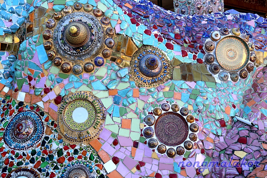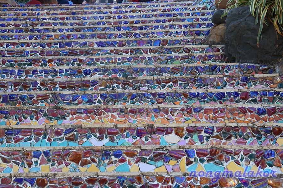 ขอจบ ขนาดขั้นบันได ยังใช่เศษกระเบื้องสีที่แตกหัก มาตกแต่งเรียงสลับสี ให้กลมกลืนเป็นขั้นบันไดให้คงไว้สวยงาม