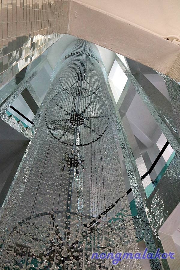 ก่อนขึ้นบันได จะมีกระจกใสมองเห็นด้านล่าง ที่อยากอยู่คนเดียว เงียบๆ ไม่ได้เจอแสงสว่าง ทางธรรม จะมองเห็นโลกใบนี้เป็นของเรา ถ้ากลางคืนไม่เปิดไฟ น่าจะมืดมนกับสังคมแบบนี้ ที่อยากได้โลกนี้เป็นของเราคนเดียว ช่วงนั้นก็คิดไปเรื่อยเปื่อย เดินขึ้นบันได อย่างเดียว ไม่เห็นชั้นล่างเลย แต่น่าจะกว้าง มีแสงสว่าง โล่งโปร่งแสง อยู่เหมือนกัน