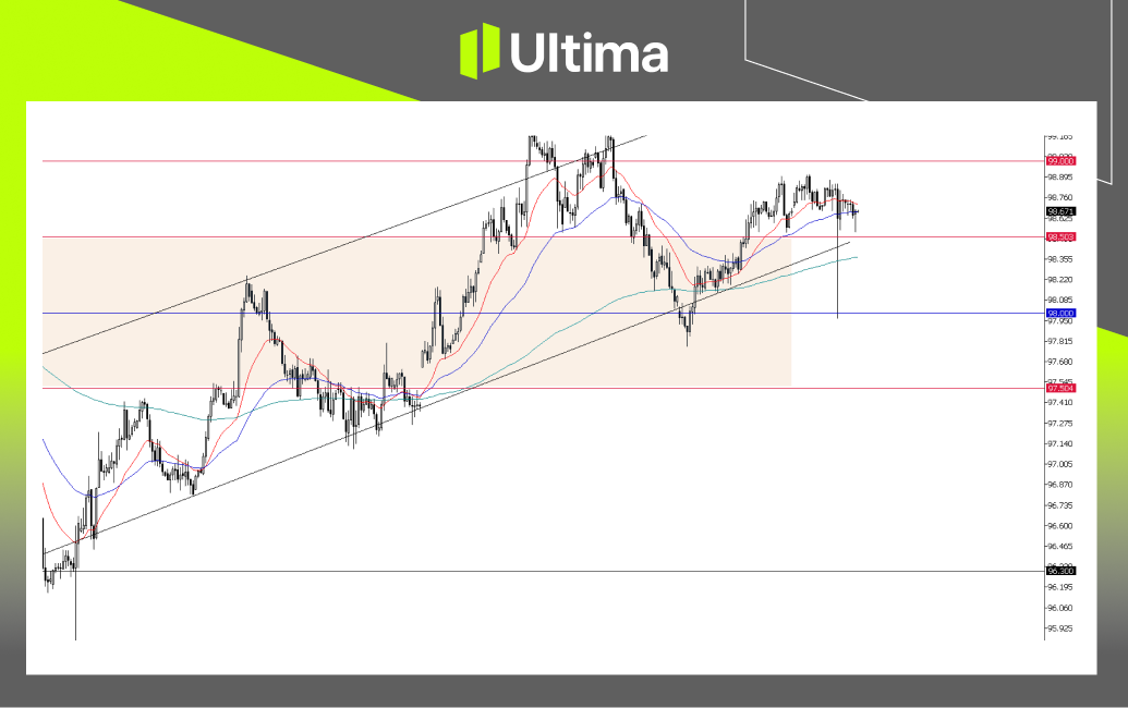 - หากระดับแนวรับ 98.50 ไม่สามารถรักษาไว้ได้ ค่าเงินดอลลาร์อาจเผชิญกับความเสี่ยงขาลง