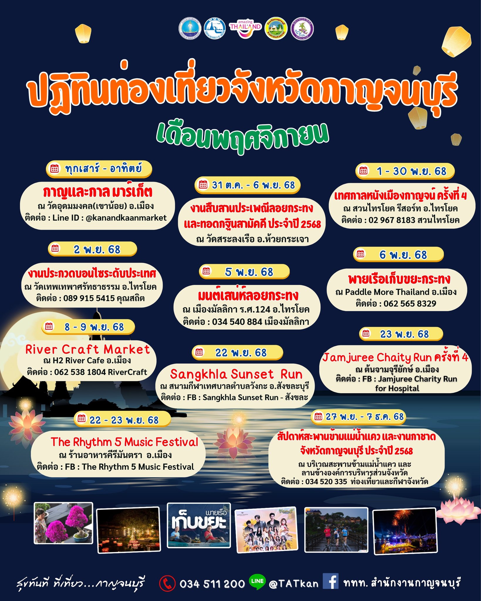 💥 ปฏิทินท่องเที่ยวจังหวัดกาญจนบุรี เดือนพฤศจิกายน 2568