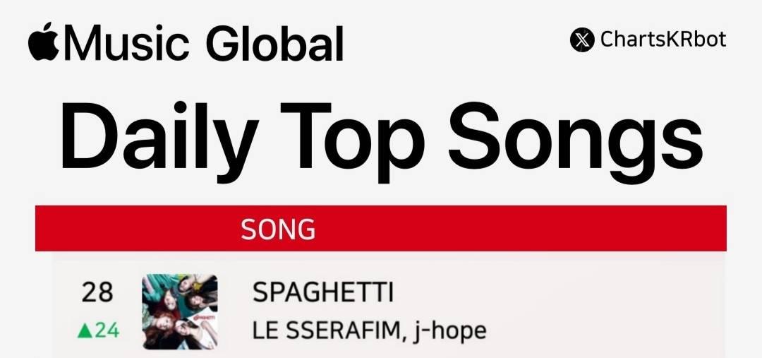 LE SSERAFIM 'SPAGHETTI' (ft. J-hope) เดบิวต์อันดับ #82 บน Apple Music TOP100 Global 🌏