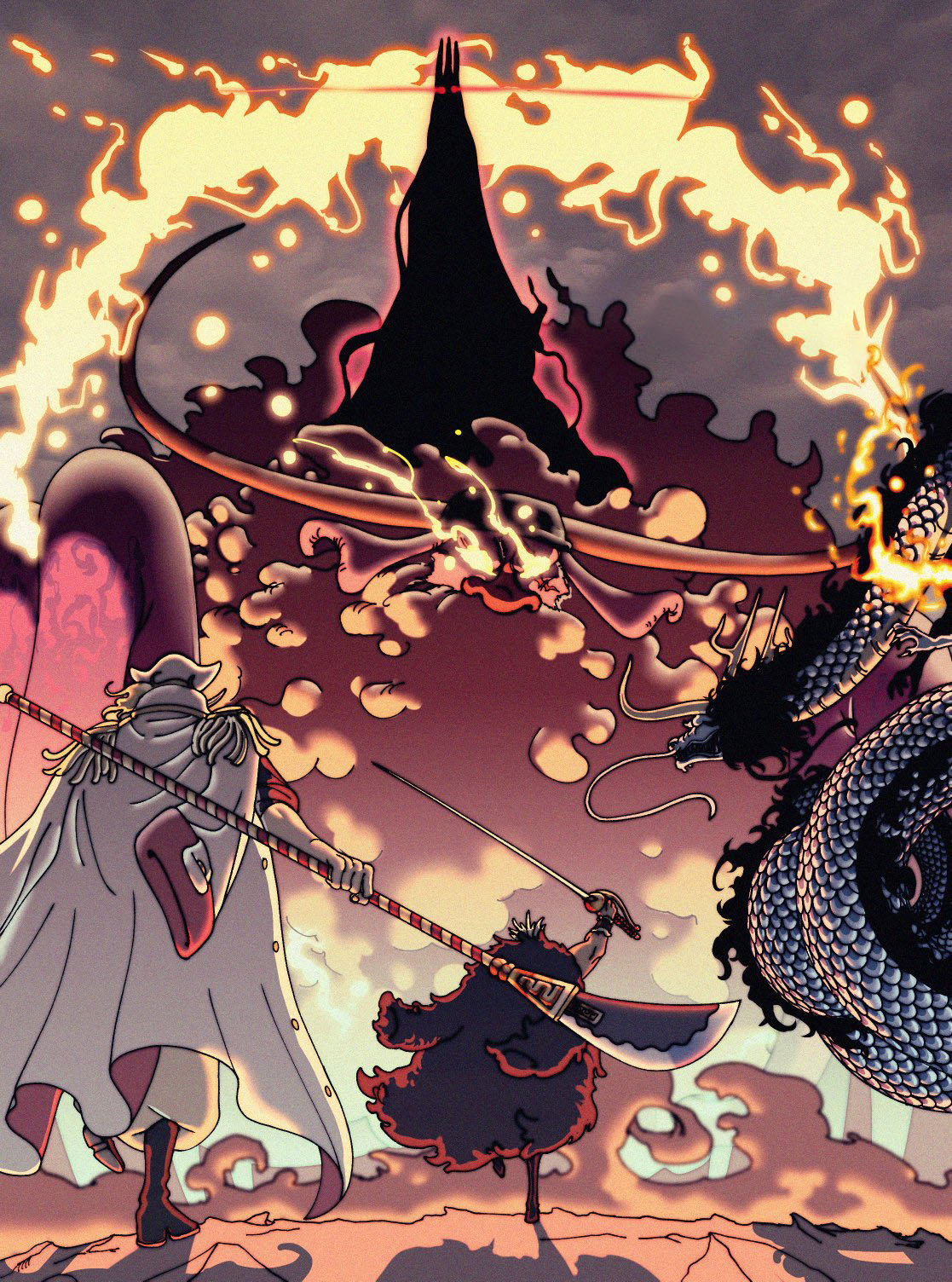 3).ดราก้อนโดนพลังกัปตันจอห์น พัดปลิวจนพลัดหลงกับแชงค์ ส่วนแชงค์ก็คลานเข้าหีบสมบัติก็น่าจะมีกลุ่มโรเจอร์มาหยิบหีบนี่ไปตอนหลังนี่แหละ เหตุการณ์ก็จะผูกกับภาพร่างในเดอะมูฟวี่ Film Red แล้ว ตัดฉากไป [ร็อคส์ + หนวดขาว+ บิ๊กมัม + ไคโด + โรเจอร์ + การ์ป] ใช้กระบวนท่าโจมตีใส่อิมพร้อมกัน แต่ก็ไม่เป็นผลแสดงว่าให้เห็นว่า พลังฟื้นสภาพของอิมอยู่คนละมิติกับภาคีอัศวินเทพเลย แม้แต่โคตรฮาคิของระดับตำนานก็ไม่สามารถทำอะไรได้ ถ้าจะเซอร์ไพรส์หน่อยก็คือเราได้เห็นหนวดขาวตะโกนชื่อท่าออกมาแล้วโว้ย หลังจากที่เราแซวกันว่าหนวดขาวเป็นไม่กี่คนที่ไม่เบียวชื่อท่าโจมตี แต่ก็นะชื่อท่าก็เท่ดี