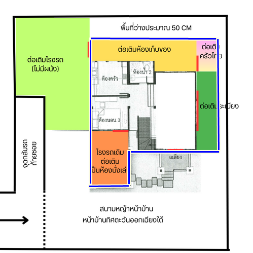ไม่ทราบว่าการต่อเติมบ้านลักษณะแบบนี้ถือว่าเป็นบ้านเว้าแหว่ง และถือว่าห้องน้ำอยู่กลางบ้านไหมคะ