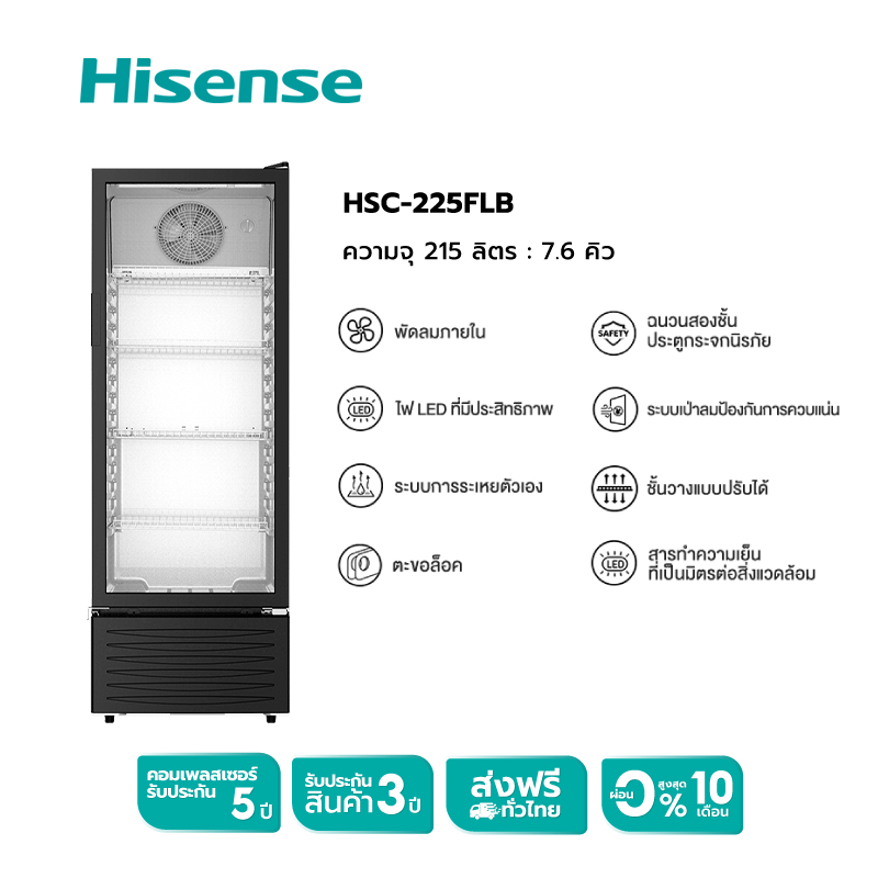 ❄️🌀 ตู้แช่เครื่องดื่ม Hisense 1 ประตู 215 ลิตร รุ่น HSC-225FLB กระจกนิรภัยสองชั้น ไฟ LED ประหยัดพลังงาน 🌬️🧊