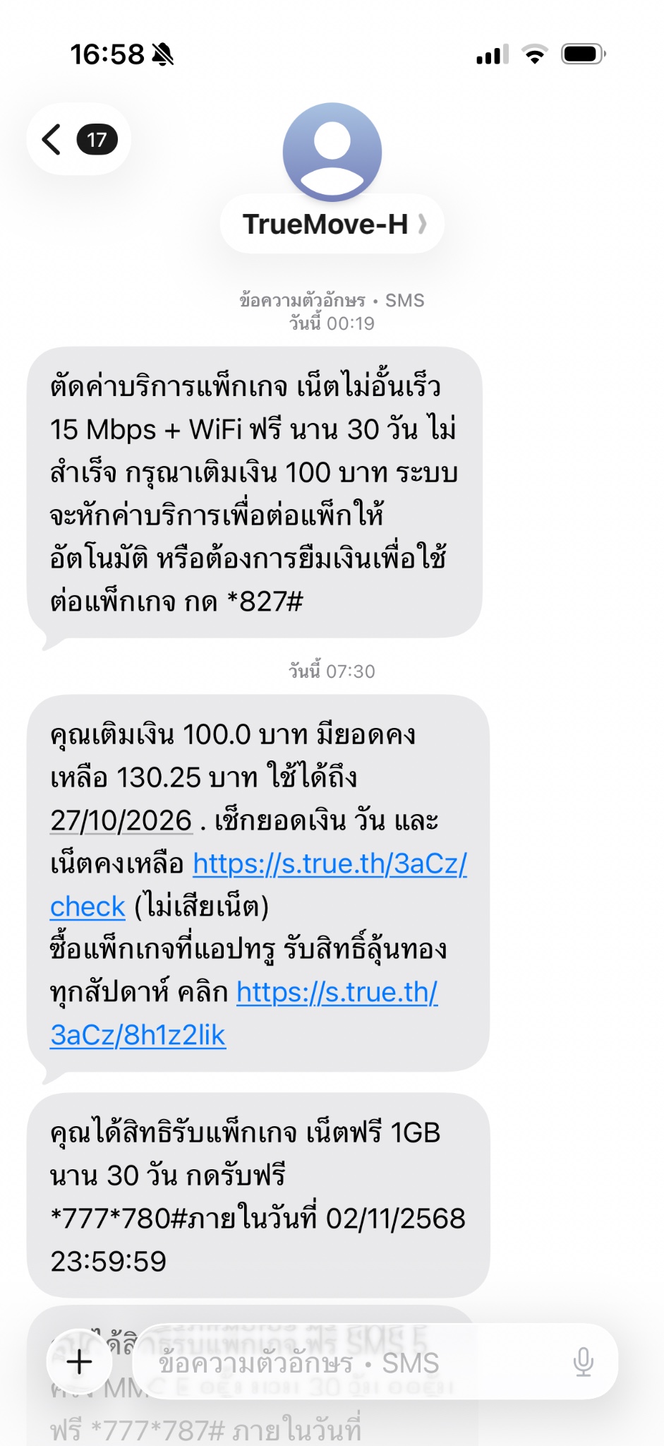 โปรเสริมรายเดือน True Move H ไม่ต่อให้อัตโนมัติ
