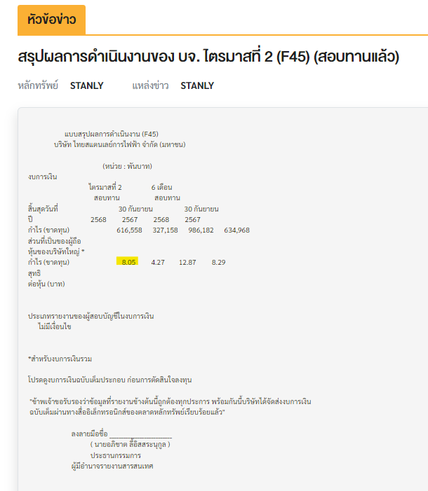 STANLY ประกาศงบ Q2/2569 เชิญเข้ามาชม