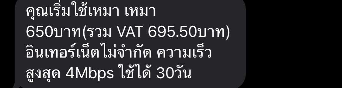 ตามหัวข้อเลยคาะ คือปดติใช้แพ็กเสริม 200B. Net 10Mbps Free Call 15mins per time 30 days มาตชอด แต่จู่ๆเมื่อคืนมี SMS ส่งมาบอกว่า คุณเริ่มใช้ เหมา เหมา เดือนละ 250บ. (รวมVAT) เน็ตเร็ว 10Mbps ใช้ได้ 100G