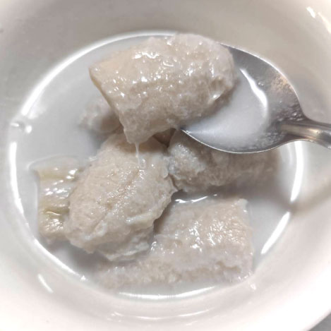 รอให้เย็นแล้วปอกเปลือกหั่นเป็นชิ้น