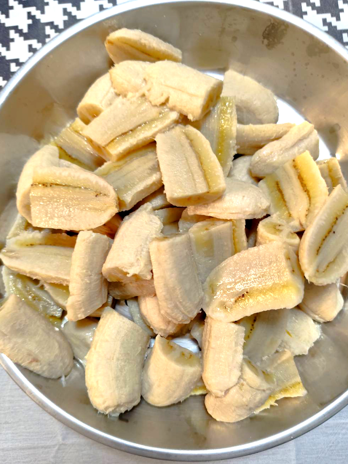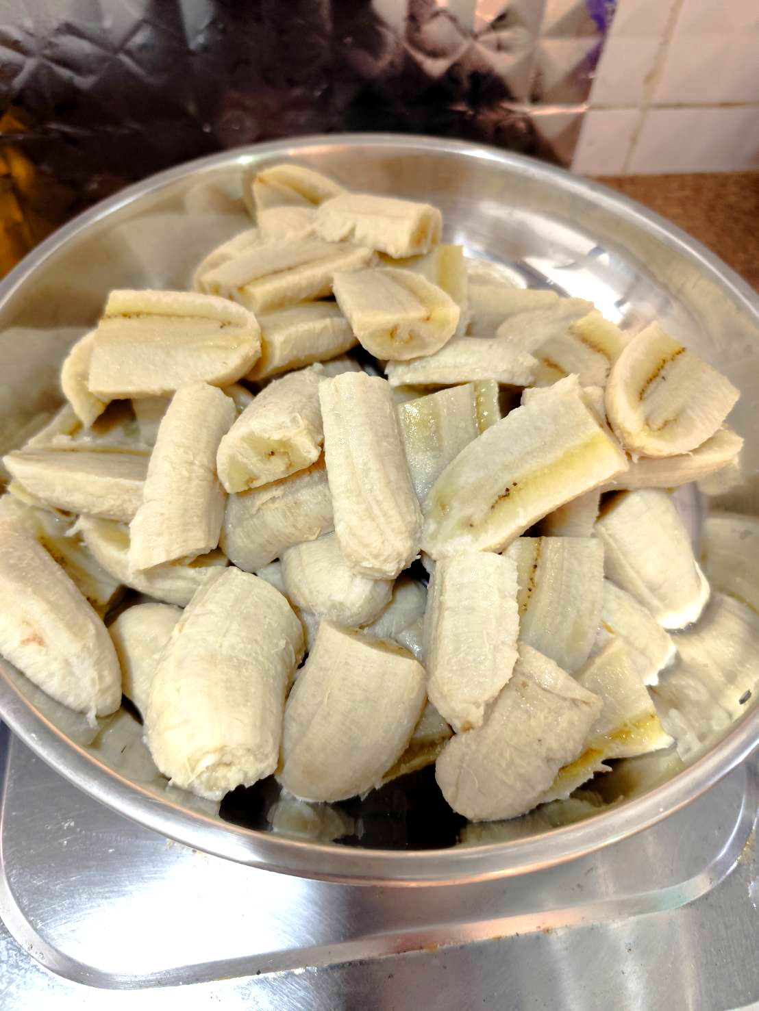 กล้วยน้ำว้า เอาไปต้มทั้งลูก ต้มน้ำให้เดือดและใส่เกลือ