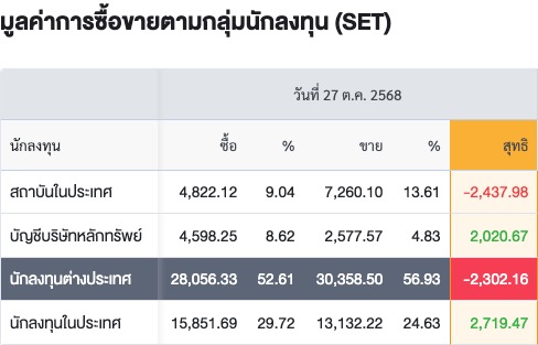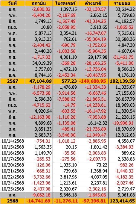 Sinthorn Summary 24/10/2568 : ต่างชาติขายสุทธิ -2,302.16 ลบ.