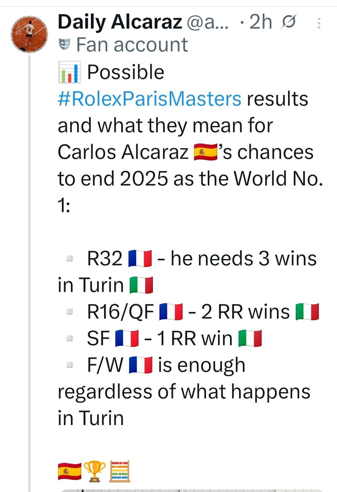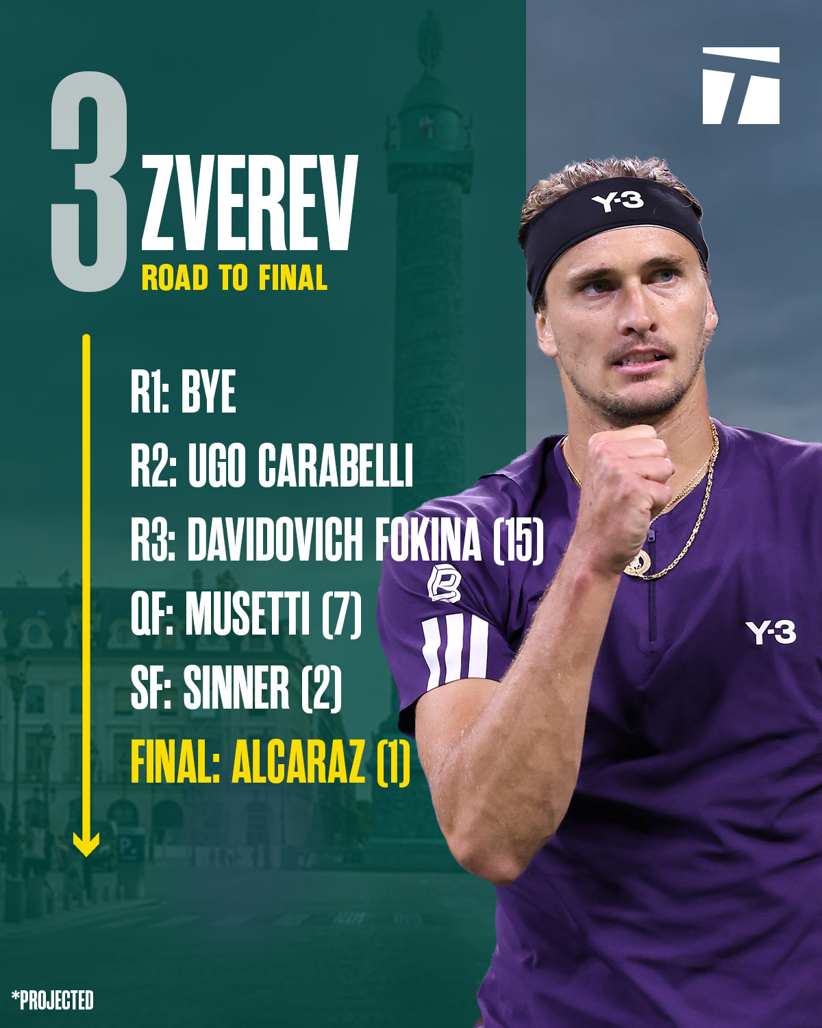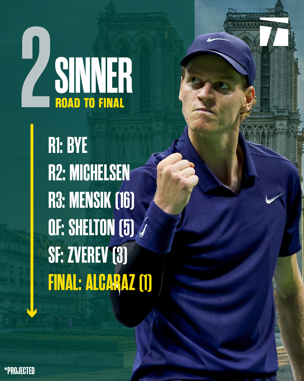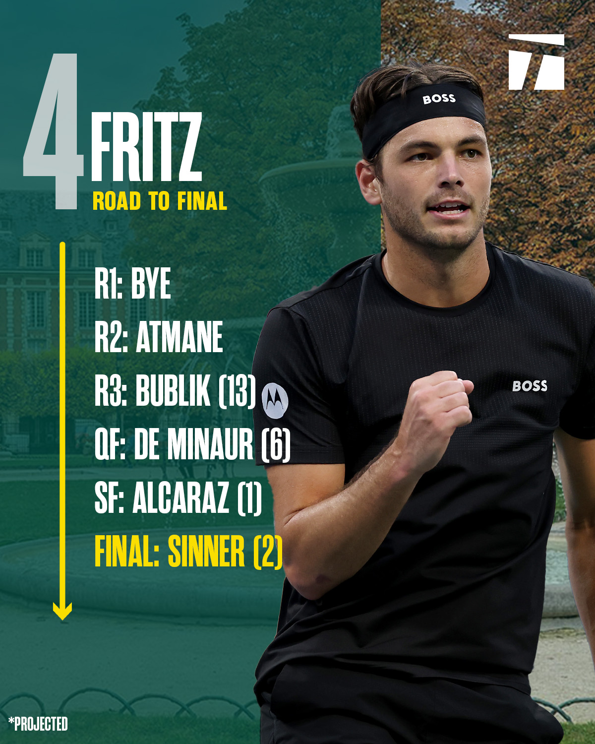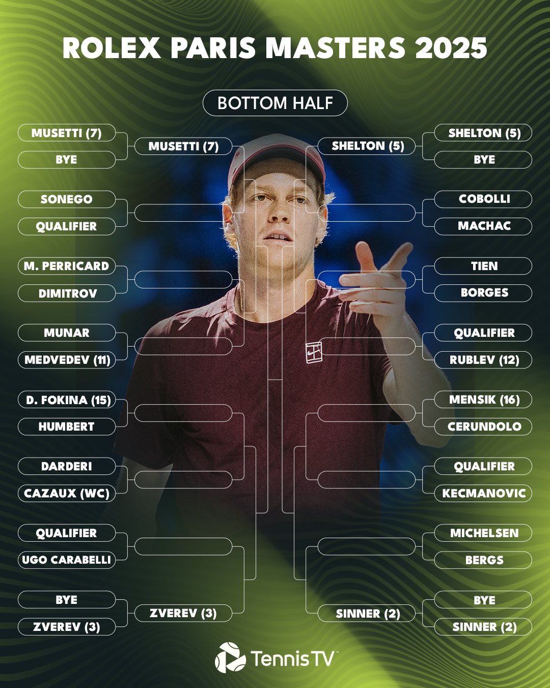 โดยมีสมมุติฐานว่า Jannik Sinner ชนะในทุกรายการที่เหลือ คือ Vienna, Paris Masters และ ATP Finals