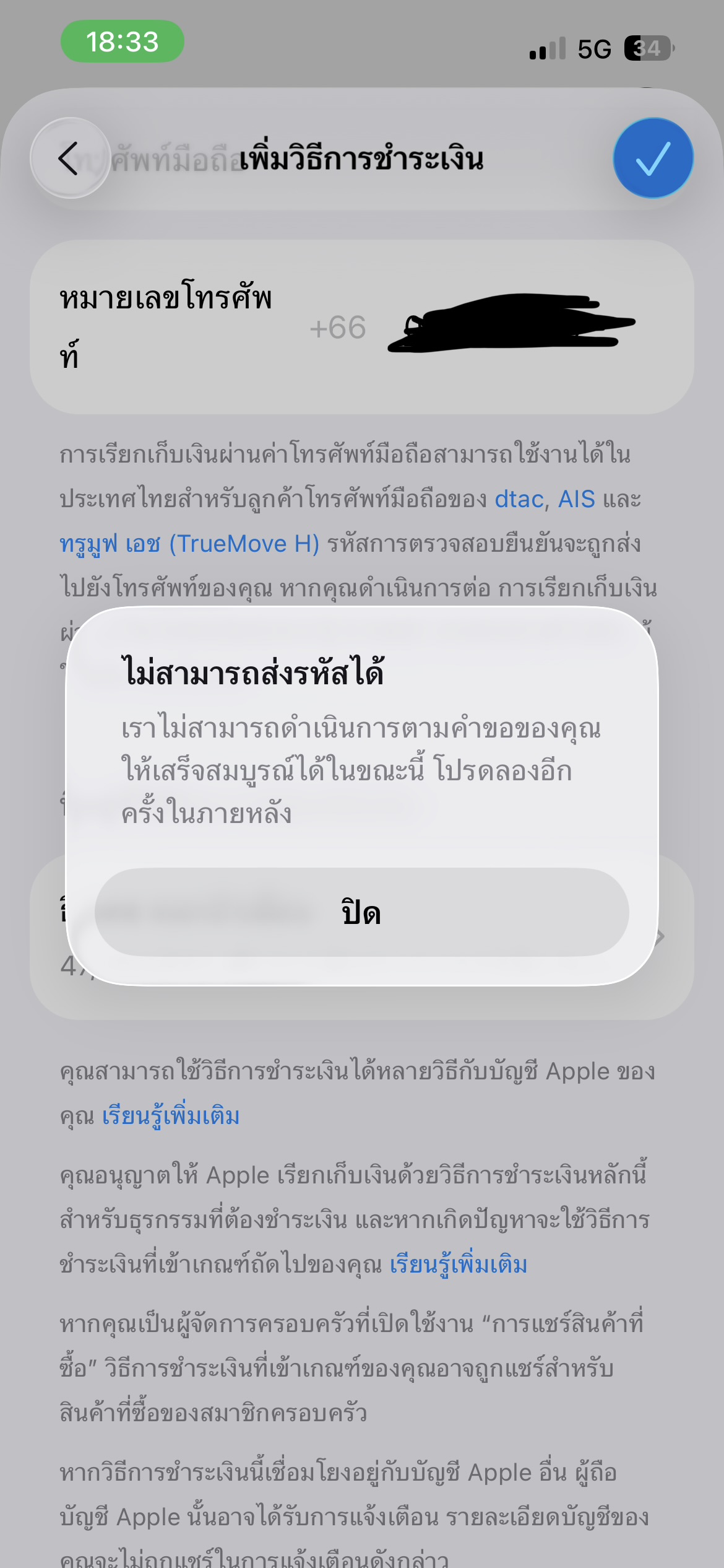 การชำระเงินผ่านซิม Ais ถูกปฏิเสธ - Apple