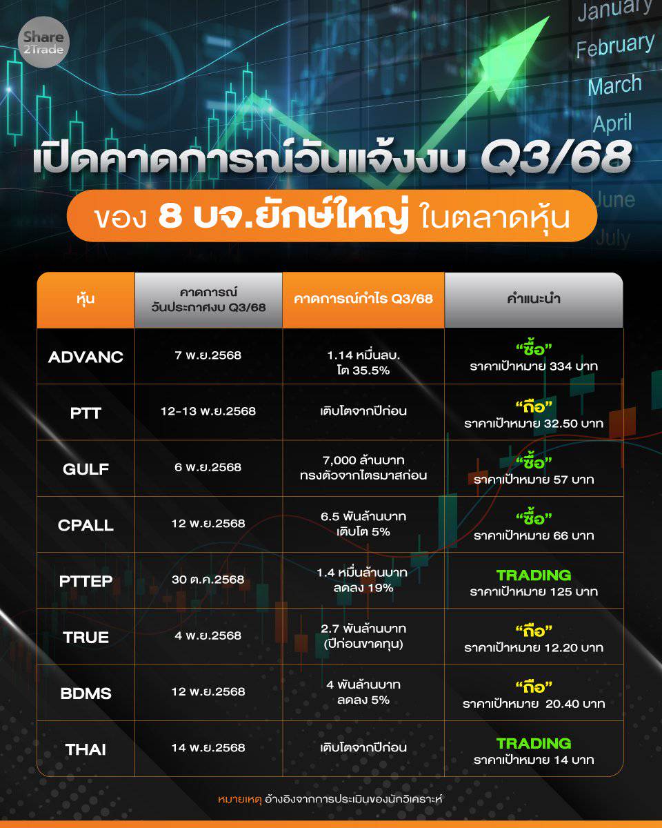 คาดการณ์งบ Q3/68 ของ 8 บริษัทยักษ์ใหญ่