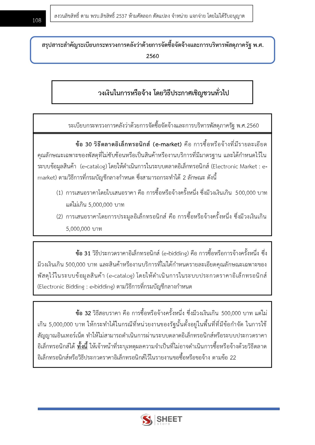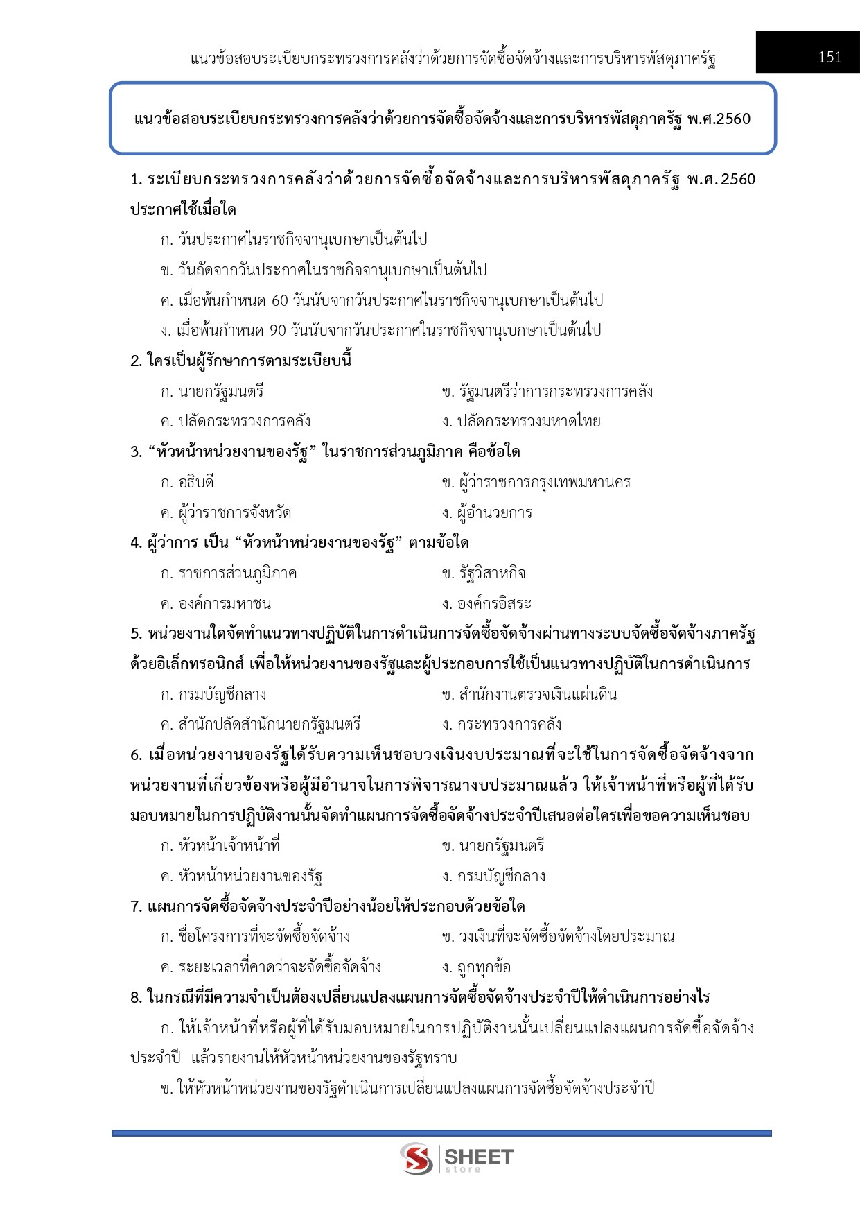 - แนวข้อสอบสรุปสาระสำคัญระเบียบกระทรวงการคลังว่าด้วยการจัดซื้อจัดจ้างและการบริหารพัสดุภาครัฐ พ.ศ. 2560