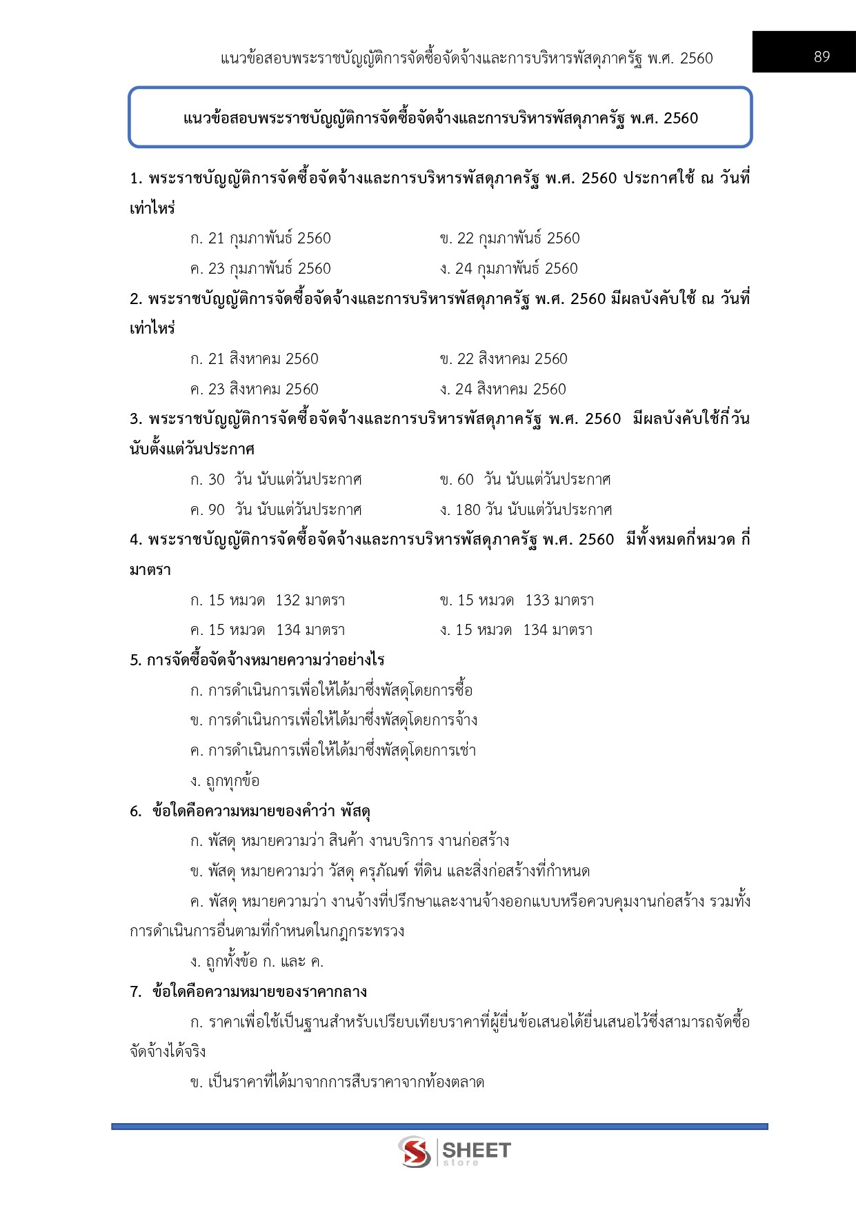 - แนวข้อสอบสรุปสาระสำคัญพระราชบัญญัติการจัดซื้อจัดจ้างและการบริหารพัสดุภาครัฐ พ.ศ. 2560