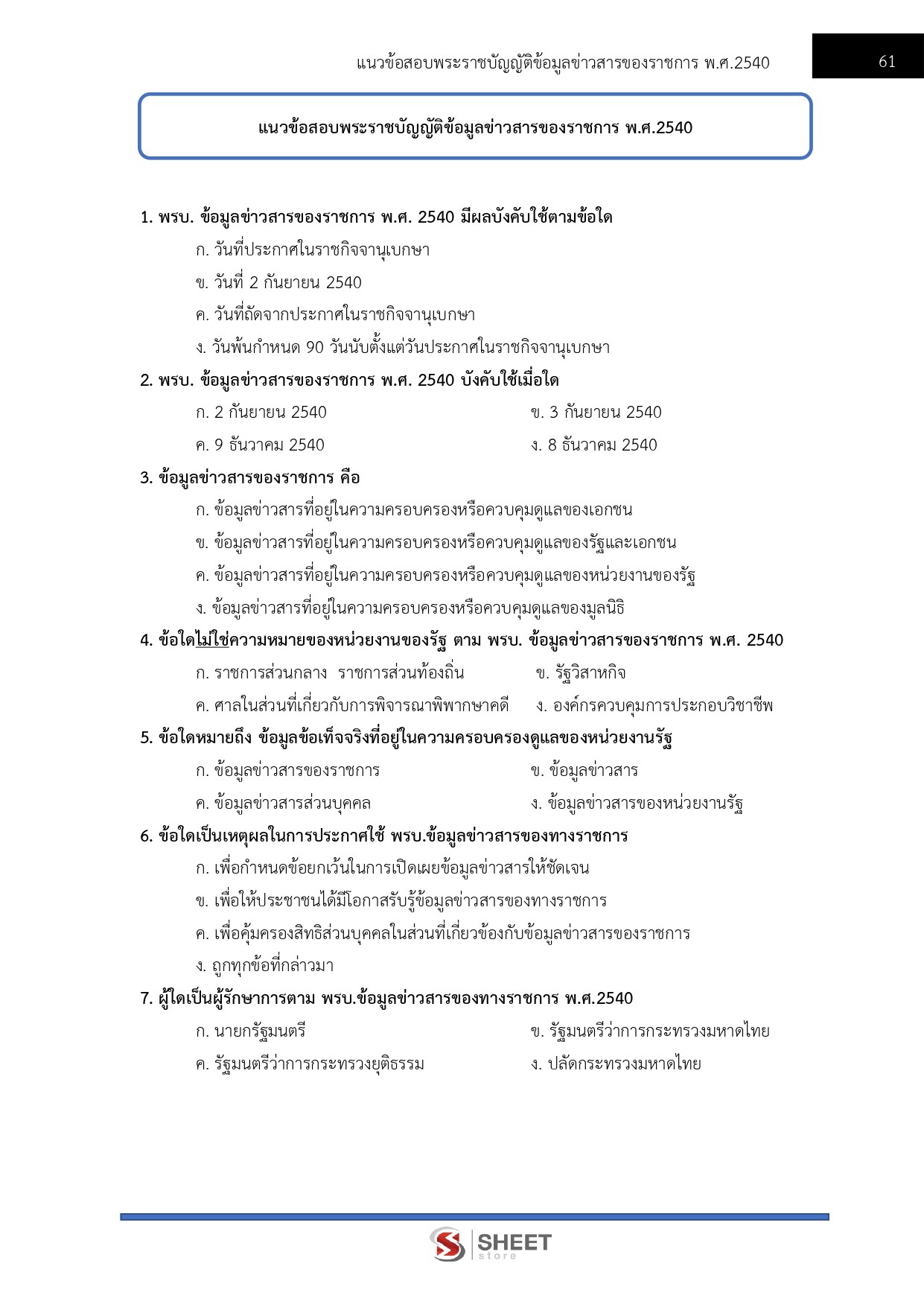 - แนวข้อสอบสรุปสาระสำคัญพระราชบัญญัติข้อมูลข่าวสารของราชการ พ.ศ. 2540