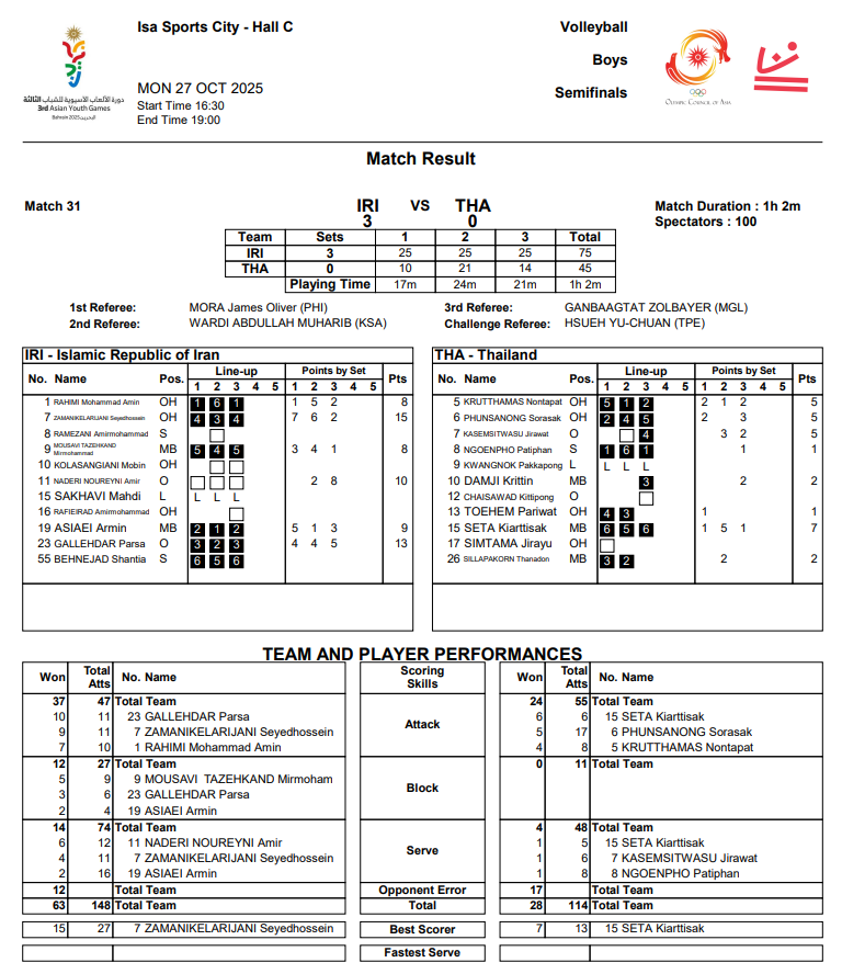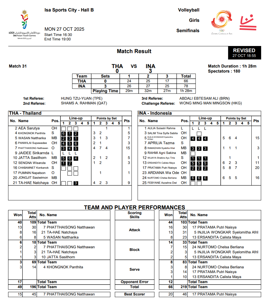 [สถิติ] Semifinal ไทยแลนด์ 0 - 3 อินโด l เจอบล็อคจุกๆ เอสจุกๆ (2025 Asian Youth Games)