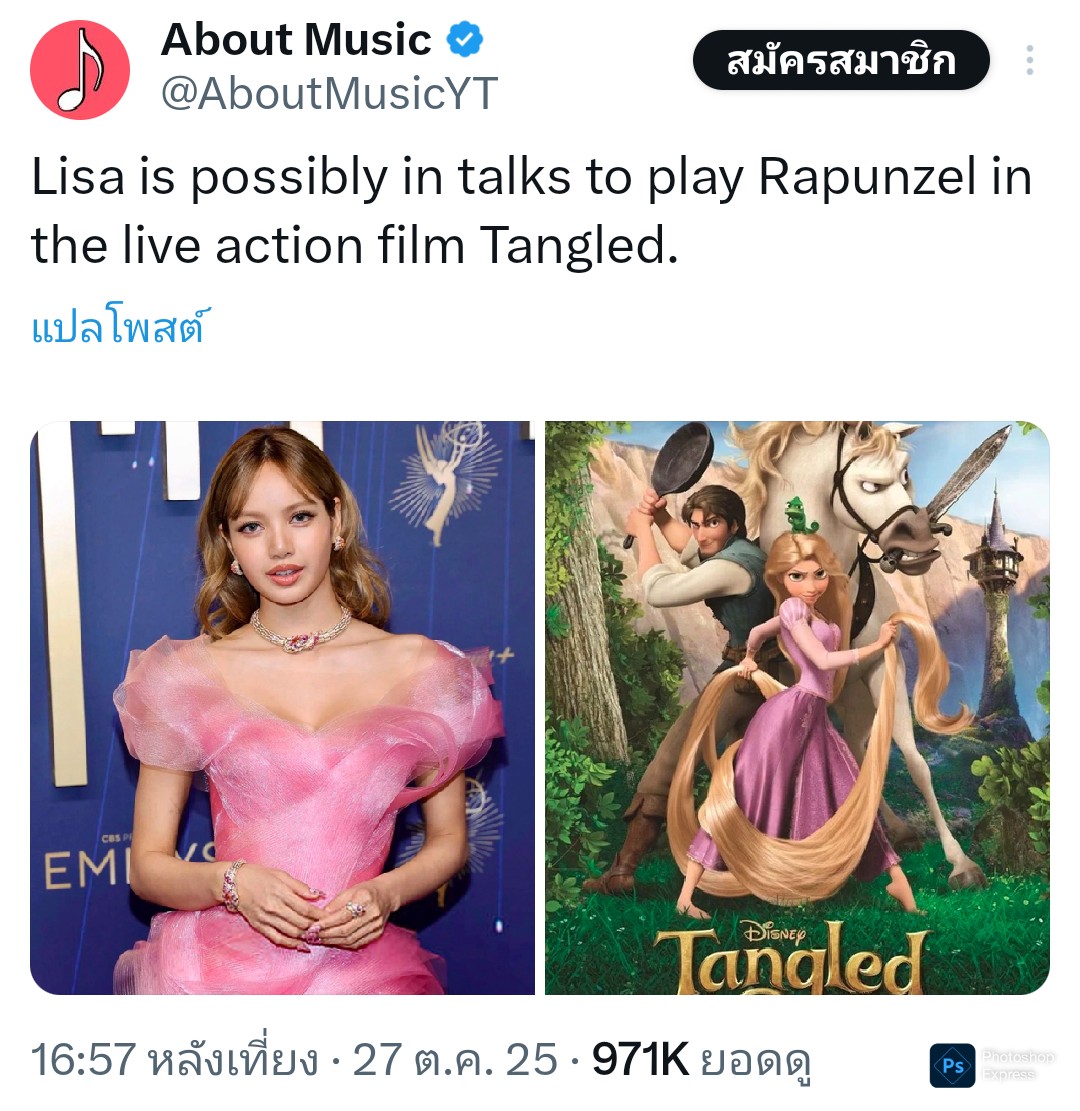 LISA ขณะนี้มีความเป็นไปได้ว่ากำลังพูดคุยถึงความเป็นไปได้ในการรับบท Rapunzel ในภาพยนตร์ Live Action เรื่อง Tangled