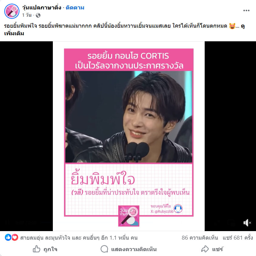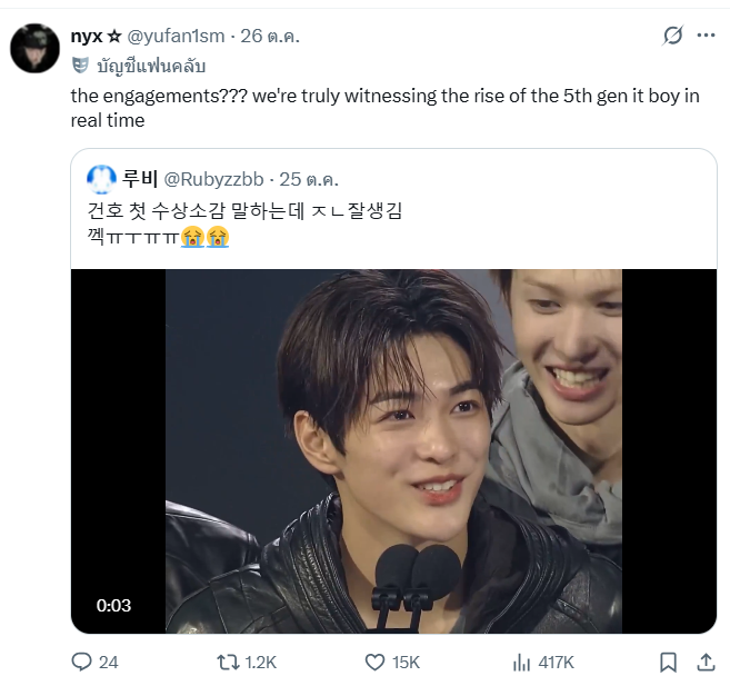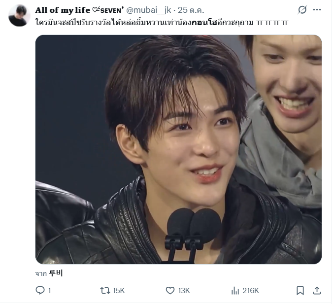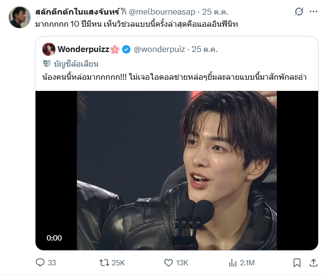 คลิปนี้กลายเป็นไวรัลทั้งในไทย เกาหลี และสากล ด้วยโทน “first-award speech charm” ที่หายากในไอดอลหน้าใหม่