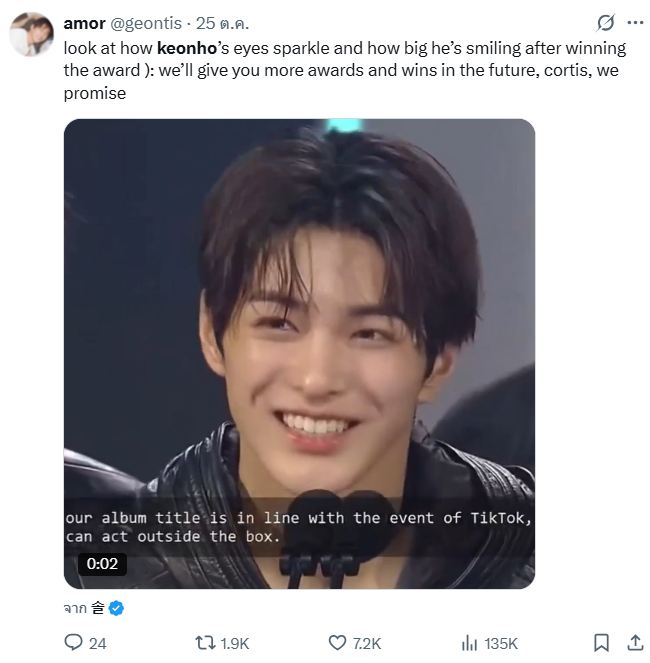 หล่อจนเป็นไวรัล! “กอนโฮ CORTIS” รอยยิ้มที่ทำให้คนพูดถึง หลังขึ้นรับรางวัลครั้งแรกในงาน TikTok Awards Korea 2025