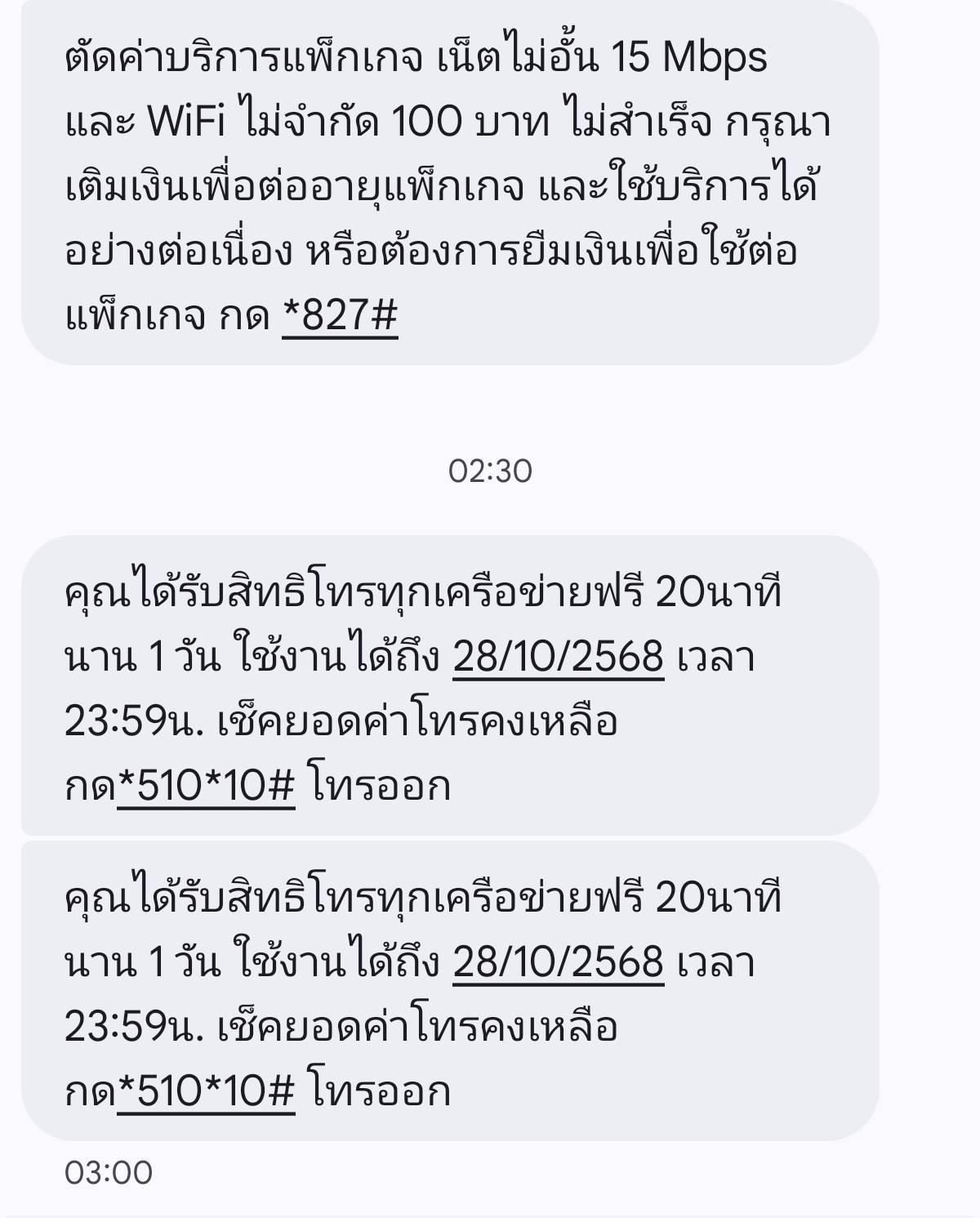 ผมเติมเงินเผื่อในซิมตามภาพ เพื่อรอตัดบริการ 100 บาท แต่มี sms แจ้งว่าตัดไม่ได้ ผมโทร 3 รอบ จะโทรแจ้งปัญหาเพราะกลัวเสียสิทธิ์ ครั้งละเกือบ 30 นาทีตอนตี 2 -3 มีแต่แจ้งว่าคนติดต่อจำนวนมา แล้วยังไม่มีใครรับสายเลยครับ