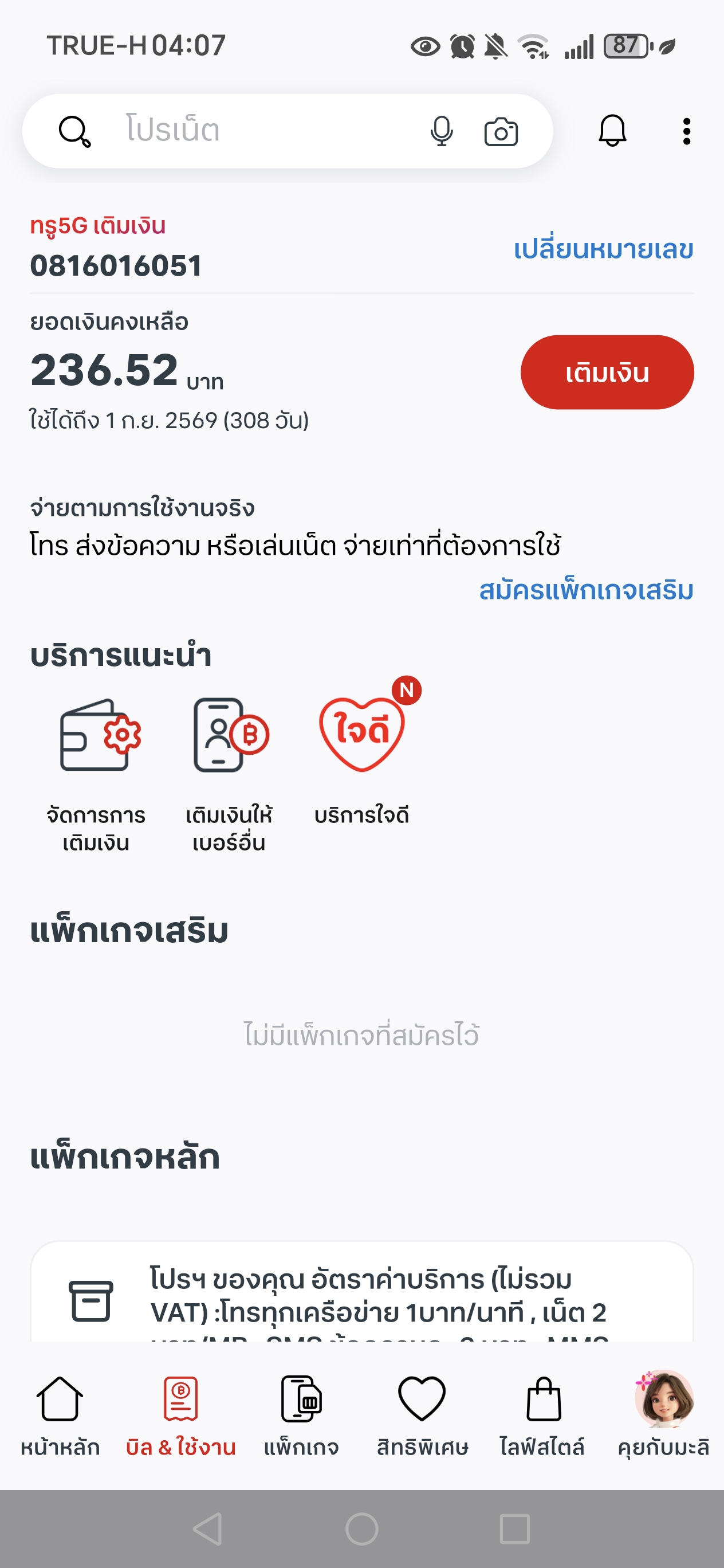 ทรูเติมเงินไม่ยอมต่อแพ็กเกตเน็ต ทั้งที่มีเงินในระบบเพียงพอ