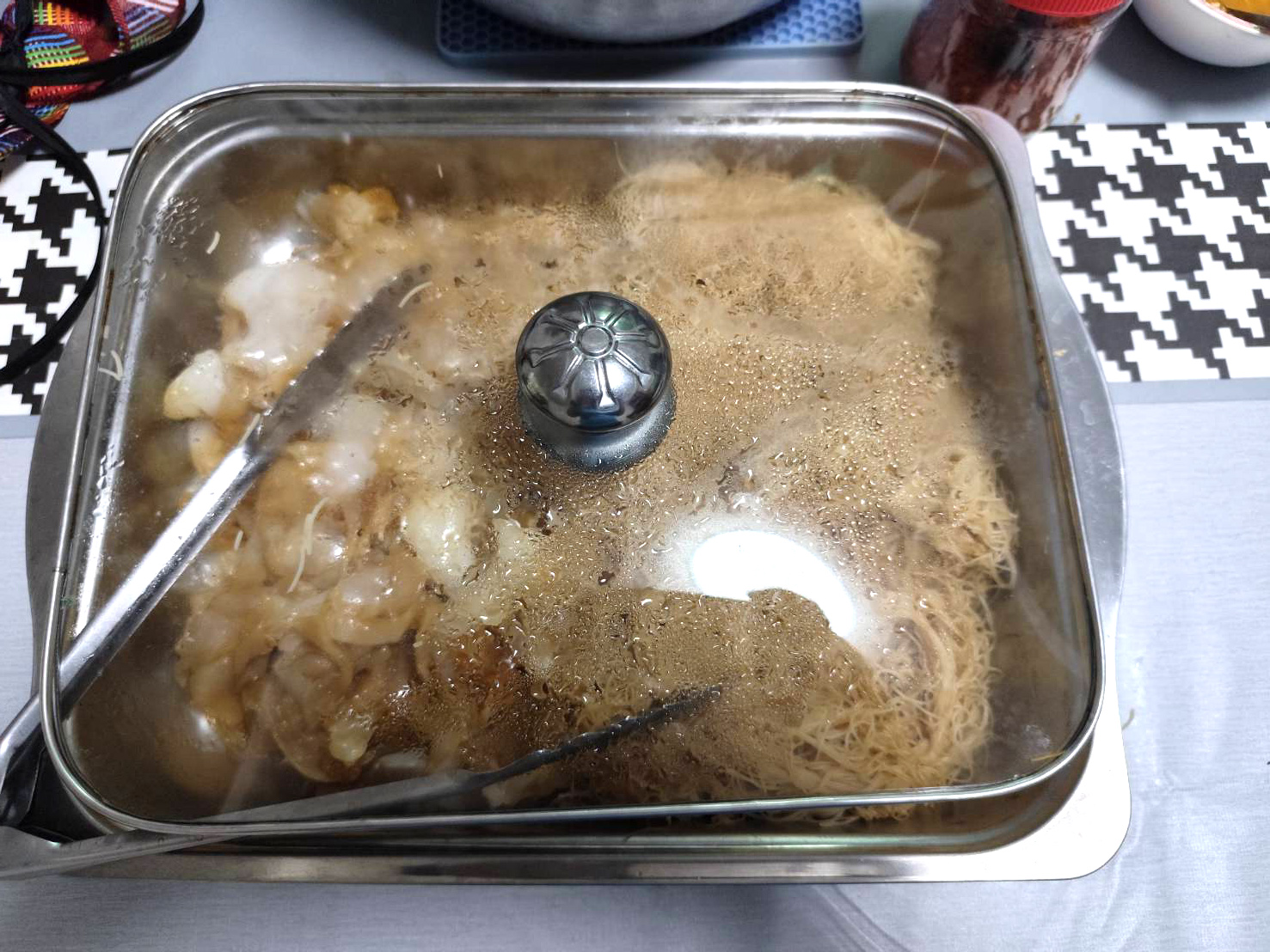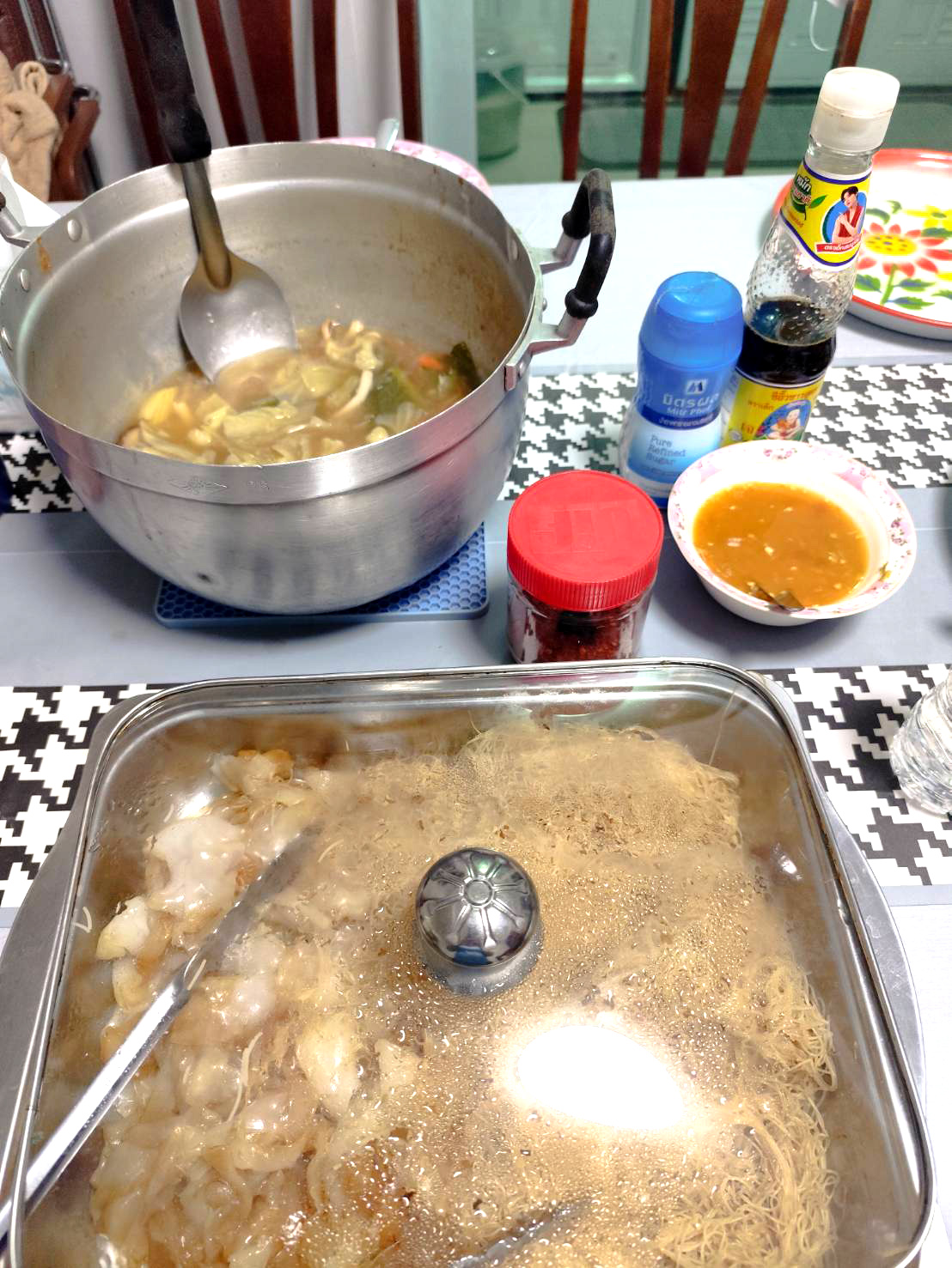 ตอนกลางวันเพื่อนแม่กับป๊ามาที่บ้าน แม่เลยทำราดหน้าเจตั้งแต่ตอนกลางวัน