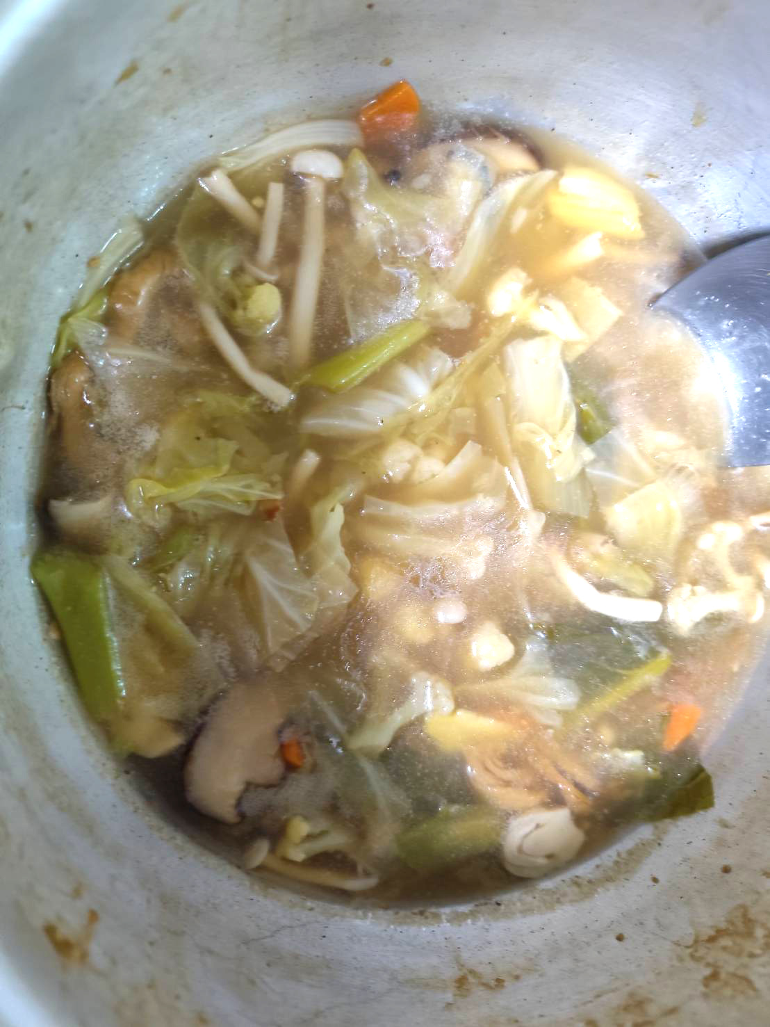 ราดหน้าเจที่บ้านทำจะใส่ผัก, กะหล่ำปลี, ผักกาดขาว, ข้าวโพดอ่อน และเห็ดต่างๆ