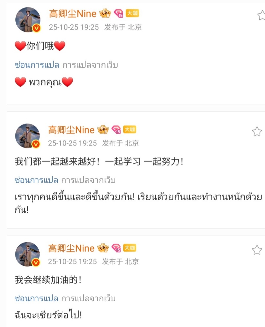 น้องนายโพส weibo ขอบคุณแฟนคลับรัวๆเลย ถึง 4 โพส