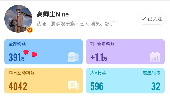 ทั้งนี้ น้องนายน่าจะเป็นศิลปินชายไทยคนแรก ที่ยอดฟอล Chaohua ถึงหลักล้าน ค่ะ นอกจากนี้ยอดผู้ติดตามในเว่ยป๋อของน้องนาย ตอนนี้แตะ 3.91 ล้าน แล้วด้วย