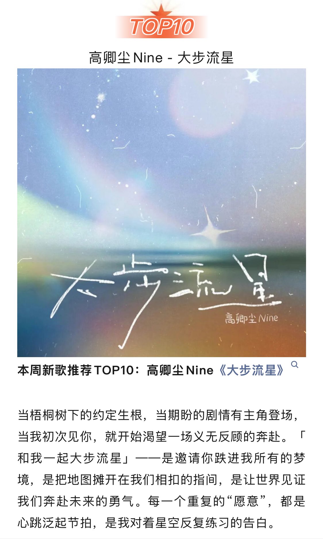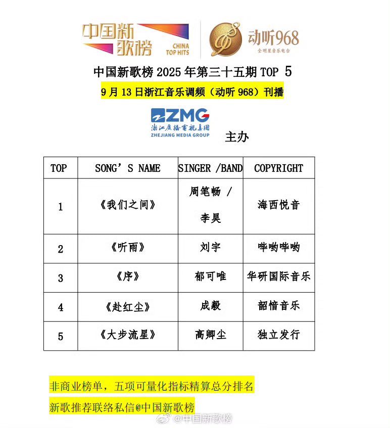 ผลงานปัจจุบันของน้องนาย ด้านงานเพลง เพลง 大步流星 ของน้องนาย ติดชาร์ต Pop Song Chart (流行金曲排行榜) ฉบับที่ 479 ในอันดับที่10 และ ติดอันดับที่5 ในชาร์ต China New Songs Chart 2025 ฉบับที่ 35 ของสถานีวิทยุ Zhejiang Music FM (Dongting 968) ค่ะ