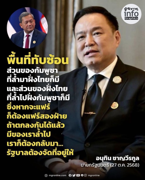 ถ้อยแถลงของนายกอนุทิน เท่ากับยอมรับว่า ไทยรุกล้ำดินแดนเขมร หรือไม่
