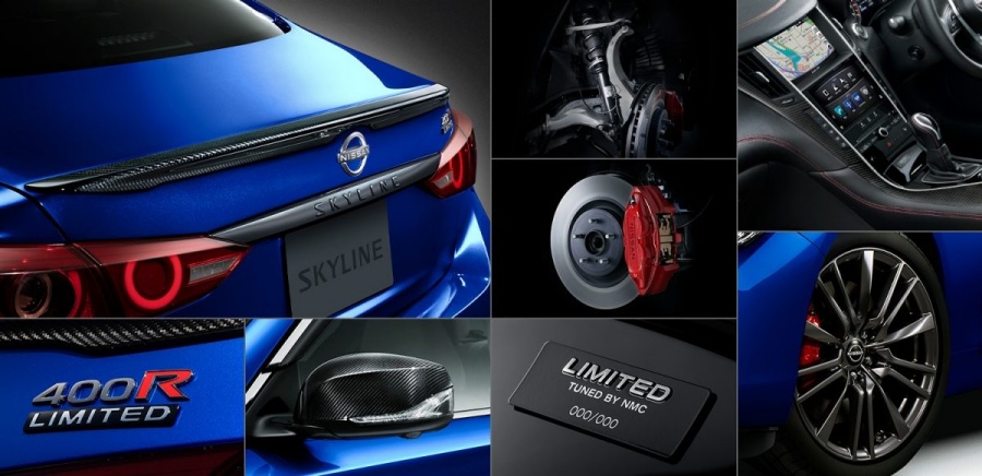 รุ่นพิเศษ 400R Limited นี้ ได้รับการสร้างขึ้นบนพื้นฐานของ Skyline 400R ตัวแรง โดยมุ่งเน้นเพิ่มเอกลักษณ์ด้านดีไซน์และการควบคุมในระดับที่เหนือกว่า ภายนอกโดดเด่นด้วยสปอยเลอร์หลังคาร์บอนไฟเบอร์เฉพาะรุ่น และฝาครอบกระจกมองข้างวัสดุคาร์บอน ที่ช่วยลดน้ำหนักและเพิ่มภาพลักษณ์ความสปอร์ตอย่างชัดเจน