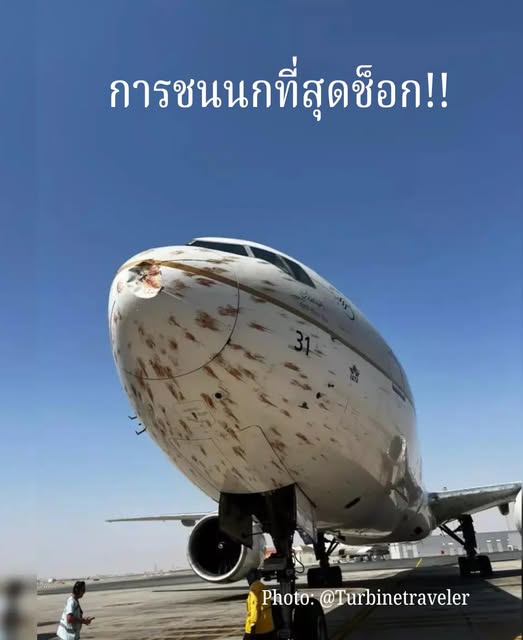 ฝูงนกนับร้อยบินขึ้นมาปะทะ Boeing 777 ของ Saudia ราวกับค้างคาวออกจากถ้ำยามเย็น … และข้อความว่า