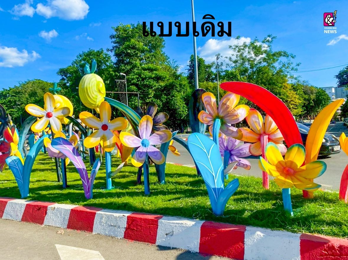 เมื่อคืนที่ผ่านมา เทศบาลนครเชียงใหม่ ได้ปรับเปลี่ยนรูปแบบซุ้มไฟและตกแต่งเมือง ในงานประเพณีเดือนยี่เป็งเชียงใหม่