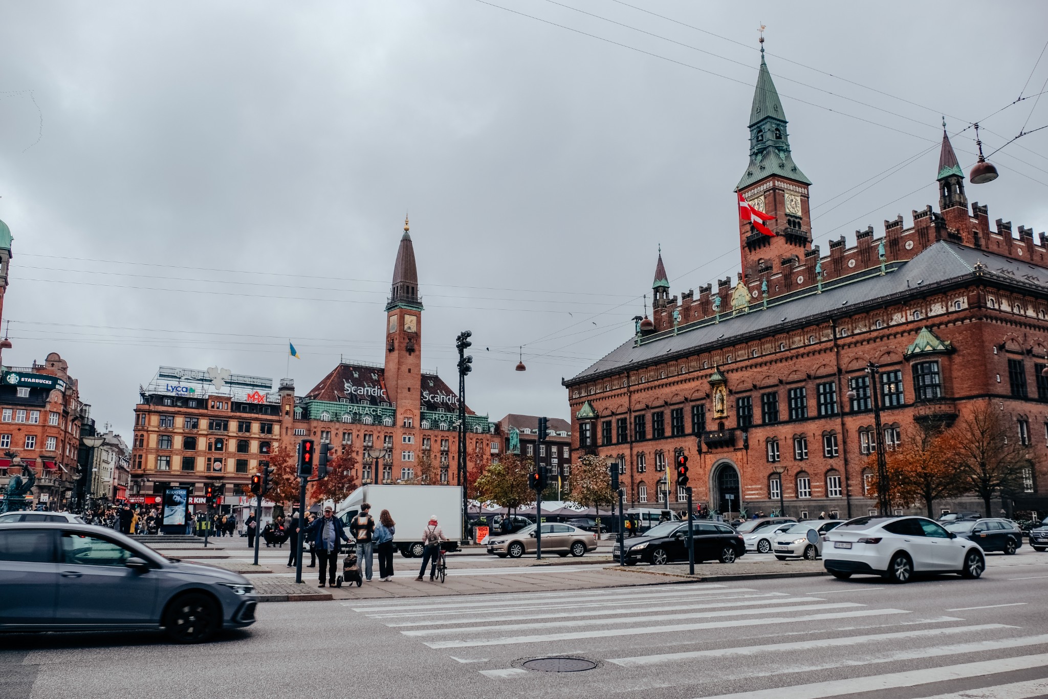 เดินบนถนน Vesterbrogade ต่อมาอีกหน่อยจะเจอกับ Copenhagen City Hall